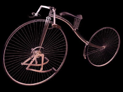 "The Facile, patented in 1879 by the British firm Beale and Straw, used lever extensions on the pedals to situate the rider closer to the center of the frame. The bicyclist pushed up and down on the reciprocating levers, tracing short arcs rather than full circles. Though almost as high up as [on an Ordinary], the rider was purportedly less likely to suffer a header because the new seat position, along with the larger rear wheel, made for a better distribution of weight and hence a more stable vehicle. Before long the Facile began to prove itself in competition and attract a large following. In 1883, J.H. Adams rode an astonishing 242 miles, setting a new twenty-four-hour record" David Herlihy - The Bicycle: A History, pages 218 -219 |