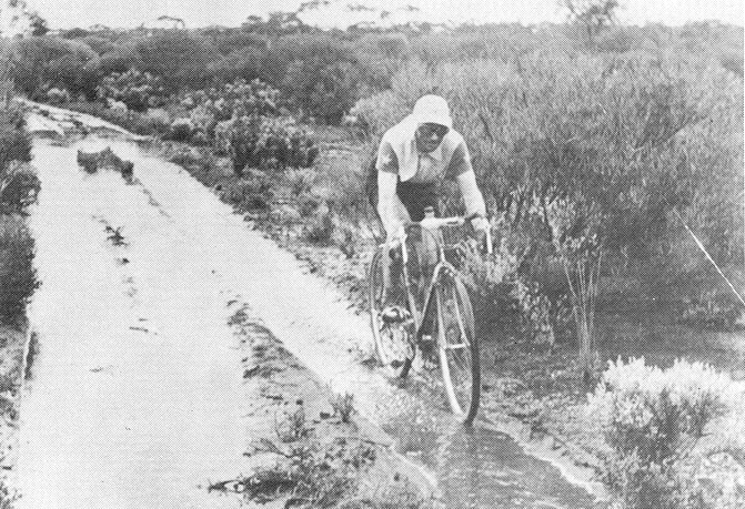 "Opperman was well known for setting long distance records including, in 1927, breaking the 24 hours unpaced continuous cycling record riding 416 miles (669 km). [In 1937 Oppy set the record for] Fremantle to Sydney (4402 km) - 13 days, 10 hours." (text source here) (more oppy info) |