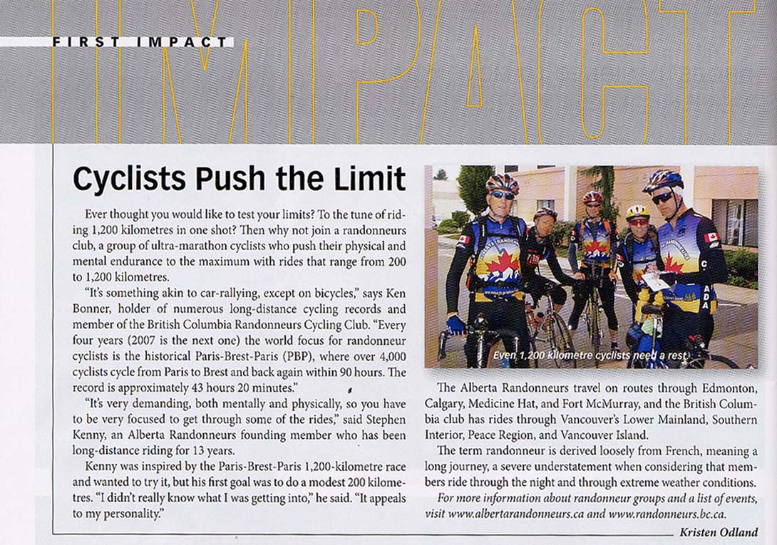 Cyclists Push the Limit by Kristen Odland Impact Magazine, May/June 2006 "The Cycling Issue", page 12
