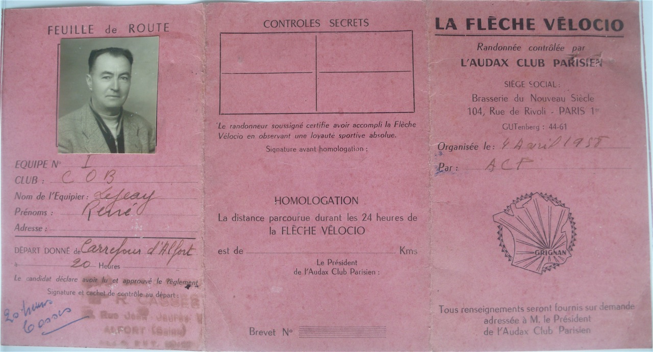 "I have received an answer from Daniel Provot. He doesn't know many things about Alfred Legeay. I understand he was not particularly outgoing, a lonesome rider probably. The COB was the club of the Régie Renault (the cars) and according to Daniel it doesn't seem certain that Alfred was employed by Renault. He keeps his mystery...
