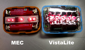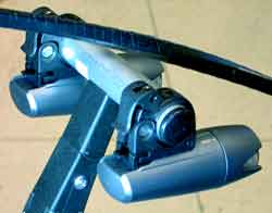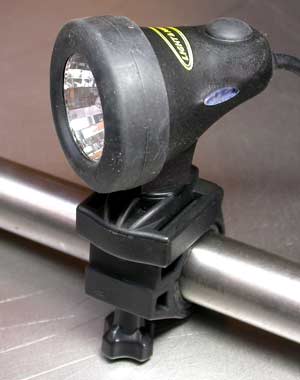 Rando Lights Blinkies Blinkies are NOT the best rear light. Blinkies have such a narrow field of view that they are virtually unidirectional. Their blink is not that powerful either. In constant-on mode, blinkies are absolutely pathetic and nearly impossible for motorists to distinguish from ambient light. The reason blinkies are so ubiquitous is not because they are effective but because they are CHEAP. A xenon strobe is better than a blinky. A xenon strobe has a much wider field of view than a blinky and a xenon strobe is brighter than a blinky. Unfortunately, xenon strobes are not that easy to find (Night-Sun sells one made by the Visibility Systems Company). However, no one is using xenon strobes for rando rides. Wheel-sucking a blinky is annoying enough. Drafting behind the stellar lightbursts of a xenon strobe could induce epileptic seizures. A reasonable compromise is to install at least two good-quality (rear) red blinkies on your rando bike. I prefer the bigger rectangular blinkies that take two AA batteries (as opposed to the pipsqueeky little blinkies that take those itty-bitty AAA batteries). The AA batteries last longer (they are bigger) and AA lithium batteries can be substituted for the pedestrian alkaline AA's that commoners use in their blinkies. The lithium batteries contain dilithium crystals (unfortunately produced by forced labor at dilithium mines on Dozaria, but what can you do?). The dilithium makes the battery lighter and the blinky brighter, longer lasting and better-performing at low temperatures. The visibility of a blinky depends on the quality of its electronic components and diodes and also on the presence of an adequate diode reflector. Most blinkies are crappy. The blinkies that the Mountain Equipment Co-op sells do not even have a reflector. The Vista-Light blinky has a reflector and is much more visible. ![]() Blinkies with the covers off. Blinkies can fail (that's why you should install two). The intense vibration of Whatcom County sealcoat can make a blinky dysfunctional. Try to mount your blinky with the rubber shims that come with it or cut up an inner tube to use as a shim on your blinky-bracket. The rubber acts as a vibration isolator. Make sure you mount the blinky on a solid part of the bike (like the seatpost or the back of a rack). Blinkies mounted on your person are useless (because of the unidirectionality of blinkies). FRONT LIGHTS Dynamos You are the dynamo. Dynamo lights are not dynamos. They are not bright enough. Flashlight-Type Lights Actual flashlights were once de rigueur amongst hardass randonneurs in Europe. Those flashlights had inappropriate beam-reflectors and the batteries would rapidly discharge due to vibration. Lately some randonneurs have been using Cat-Eye flashlights designed for bicycles (but not for randonneuring). At the last PBP I did, Cat-Eye flashlights littered the road all the way to the first checkpoint. The vibration made them fall off their mounts. I am guilty of using Cat-Eye flashlights for two PBP's. They were cheap, light and everyone else seemed to have shitty lights too. It was so manly speeding through the night in a giant pack where no one could see a bloody thing. Everyone thought the French guys at the front must have had the road memorized. During one PBP it was me and a Belgian guy (with our Cat-Eyes) at the front of a fast group (of about 100) in the middle of the night. I thought the French guys behind us must have had the route memorized. I could barely see the road, let alone the direction signs. We were at least 20 km off the route before the French guys realized we were not headed towards Brest. Luckily it was too dark to properly assess blame and no one had a bright enough light to identify anyone else. The moral of that story is that 1.5 watt and 3 watt light bulbs are completely useless for randonneuring. You need at least 10 watts and preferably 15 watts (or an HID light). HID Lights High Intensity Discharge, metal halide lights are the most efficient bicycle lights. They are brighter than hell. HID's may not the perfect thing for randonneuring though. HID's produce a bluish light that tends to obscure broken glass (but they light up everything else like dynamite!) and they tend to cost about $800. Another thing to consider is that HID's are not instant-on. They take 20-30 seconds to warm up to full brightness. However, once the HID light is at full brightness stupid motorists will actually turn down their high-beams for a change (HID's are almost as bright as a car headlight)! If HID's were mandatory for randonneuring (which they probably should be) I would rush right out and buy one tomorrow. LED's LED front lights (aka front blinkies that stay on) are not bright enough. The Luxeon V LED is sort-of bright but has an unacceptably high price and short life (it runs too hot). Don't expect this technology to improve anytime soon. So LED front lights are no good for "seeing" but they are ok for "being seen". I have two Planet Bike Beamer 3 white LED lights on each of my bikes. In blinking mode they frighten cars away. The Beamer can also be used as a flashlight. Along with the Beamers and actual headlights I have some yellow Cat-Eye blinkies on the front of a couple of bikes. ![]() Two photon torpedoes...er, uh, Planet Bike "Beamers" mounted on a Minoura Space Grip. Normal Lights Most non-crackpot cyclists are using one form or another of MR-11 or MR-16 halogen front lights (MR-16's are better because they have a bigger reflector). MR stands for Mirrored Reflector and they are the same type of lights used on the track-lighting in your kitchen. MR lights are very suitable for cycling because of their precise beams. MR halogen lights are not as efficient as HID lights but they are ok for randonnuering and fine for commuting. ![]() The Light & Motion MR fixture housing for bikes. Note how the head swivels from side to side. Light & Motion also makes an awesome HID light: http://www.bikelights.co