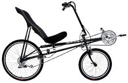 [June 2008 Update]: Since I wrote the wrote the 2006 PBP recumbents newsletter article (below) marathon cyclists have moved higher up the learning curve of what types of recumbent bike designs work for marathon cycling. More people are now using 'bents for randonneuring and various other ultramarathon events. The technological development of randonneur-worthy 'bents is slowly but surely inching its way to the point where I believe we will eventually see a substantial proportion of randonneurs riding 'bents. The fastest recumbents at the 2007 Paris Brest Paris were two Quest Velomobiles driven by Hans Wessels (53.05) and Ymte Sijbrandij (53.05). The fastest recumbent bicycle was an M5 Carbon High Racer ridden by Tijmen Hoeve (57.52). ![]() Photo courtesy of M5 Ligfietsen The interesting thing is that Tijmen took 7 hours and 52 minutes off his 2003 PBP time (65.44) when he used the new M5 Carbon High Racer in 2007. The M5 model he used was a bit unusual in that it had 700c wheels. Most highracers use smaller 650c wheels. The M5 Carbon High Racer has some features that make it suitable for randonneuring. It has a light, stiff frame and it is available with a tailbox for storage and better aerodynamics. The tailbox, carbon seat and bottom bracket boom also deflect a certain amount of tire spray when the bike is used without mudguards (as Tijman did for a very wet 2007 PBP). Stateside, the lovely filament-wound Carbent carbon highracer was recently brought back into production by Dana Lieberman of Bent Up Cycles in Van Nuys, California. The Carbent is available with 650c or 700c wheels. Amongst other types of 'bents, randonneurs in North America are using highracers from RANS, Volae and Bacchetta. The popular Bacchetta Corsa highracer can be fitted with 650c or 26" wheels and a lightweight Bacchetta mesh seat as opposed to the more conventional carbon fiber seat. Highracers with 650c wheels are generally restricted to 23mm and 25mm tires due to space restrictions and the fact that 650c tires are almost all 23mm. A 26" wheel offers the possibility of using a fatter tire like a 28mm Schwalbe Stelvio. The titanium Bacchetta Aero highracer in the 2006 article below was popular but went out of production due a lack of the tubing the frame was made of. Not to worry however, the inexpensive Corsa can fill it's place. When choosing a recumbent for brevets beware of overly enthusiastic recommendations from recumbent cyclists who are not randonneurs. Most 'bents are designed and sold for comfort, not speed. Just as most upright bikes are not suitable for randonneuring, most 'bents are not suitable for randonneuring either. There are only a few 'bents that are designed for speed and those are the ones you should consider for randonneuring. The features you should look for are: