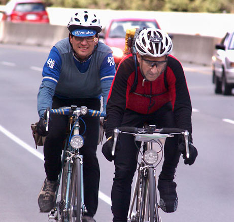 VanIsle Eau de Hell Week Report ![]() Scenic Ocean Boulevard on the 300 km, April 8 Vancouver Island Eau de Hell I am pleased to report that there were plenty of spring blossoms ... but unfortunately the pitter-patter of spring showers got a little out of hand so it was hard to detect the delectable scents of the spring blossoms. Also, many "Eau de Hell's" were exclaimed by most riders, particularly during the hilly part of the Alive Are The Hills 300 which accounted for 11,500 feet (3500 metres) of the total Eau de Hell climbing. Although Keith Fraser managed to add a few bonus kms. and some extra climbing, Michel Richard and Ken Carter demonstrated that they were real 'keeners' and added an estimated 20km and about 1000 feet of climbing to this brevet! Participation records were shattered for the Tour de Cowichan 200 (a record 70 registrants; the previous record was a little over 40 registrants set in 2006) and for the Alive Are The Hills 300 (25 participants). 17 folks registered for the Lost But Not Forgotten 400. This ride ended up with the highest number of dnf's - 5. Two of the dnf'ers, Keith Fraser and Manfred Kuchenmuller found the dark back roads of the Cowichan Valley somewhat confounding and once they found themselves on the Trans Canada Hwy, they pedaled furiously back to the finish with eerie shadowy devils nipping at their heels! Manfred said he saw a cyclist go by without a head - it was bungeed to the rack pack:-). The Ride For Gold 600 was the crème de la crème of all the Eau de Hell Week brevets. Terrific scenery and fast times to the Gold River turnaround. All riders checked in and left the Gold River Control within 15 hours of the start. The predicted storm gave some hints of its arrival with a brief, For the last 200 kms back to Chemainus, riders were assailed by a constant heavy downpour of rain driveninto their faces by 70 kph gusting wind off the straits. Temperatures were cool. At one point, Michel Richard reported he did not need to drink from his water bottle, all he had to do was open his mouth! Not unexpectedly, the return trip was cold and difficult. Riders warmed up by making frequent visits to coffee shops along the way. In spite of the fact that the 1st 2/3rds of the Ride for Gold was fast and scenic, all riders agreed that the conditions they experienced during the last 200k made this the worst brevet they had ever ridden. One Hell of a 600!! Only one dnf ... mechanical difficulties and a worry about hypothermia. Seven, yes, ... SEVEN intrepid riders completed this 'compact' Super Randonneur series!! I received a note from John Hughes, Managing Director, Ultra Marathon Cycling Association (UMCA) in which he states "I hadn't realized that the Eau de Hell Week was, in fact, a full series of brevets. Some years ago I was talking with Lon and he brought up the idea of Brevet Week. I told him - politely - that I thought it would burn people out, there'd be a low percentage who qualified, etc., etc. I was wrong!" Official Eau de Hell Week 'Hellions' (Survivors): Cum. Time 200 300 400 600 76h53m Ken Carter (Seattle) 7:28 15:00 18:41 35:44 76h59m Alex Pope (Club Treasurer) 8:03 14:22 20:26 34:08 83h05m Gary Baker (Club President) 8:44 15:39 22:45 35:57 83h07m Jeff Mudrakoff 8:33 15:04 21:31 37:59 79h25m Eric Fergusson (Club Webmaster) 8:04 15:39 22:45 32:57 74h26m Michel Richard (Past President) 9:37 15:00 18:14 31:35 75h53m Ken Bonner (A) 8:58 13:50 19:05 34:00 In sum: Lots of wonderful scenery, blossoms, hills, rain and wind. It was HELL! CONGRATULATIONS TO ALL EAU DE HELL WEEK PARTICIPANTS AND PARTICULARLY TO THE SUCCESSFUL 'HELLIONS' - EACH OF YOU DEMONSTRATED NOT ONLY INCREDIBLE RANDONNEUR TENACITY UNDER SOME TERRIBLE CONDITIONS - BUT, EACH OF YOU ALSO MANAGED TO EXUDE A POSITIVE SENSE OF HUMOUR AT THE FINISH OF EACH OF THE BREVETS!!! BRAVO!! Thanks: A VERY LARGE 'THANK-YOU' TO THE VOLUNTEERS (Graeme Sheeley; Margot Bonner; Ray Parker); HELPFUL MERCHANTS (Chemainus Subway; Chemainus Dancing Bean Café; Gold River Chalet Motel; Campbell River Mohawk; Qualicum Shell; Petro-Can in Nanaimo & Colwood Corners; Sidney 7-11; Lake Cowichan Esso; Tim Hortons in Nanaimo, Mill Bay and Royal Oak (Saanich); and finally, but not least, the Sooke Cyclery. Also, A BIG THANK-YOU TO our hard-working Club Executive for supporting the Eau de Hell Week concept; and to Cheryl Lynch (Data Base person who manages all the control cards and other paperwork); Eric Fergusson (webmaster who posts all the brevet results); Karen Smith (director of medals); and, Alex Pope (Treasurer who collects all the money and pays all the bills). Special Mention and Thanks to the organizers of the traditional Tour de Cowichan 200k, Susan Allen and Doug Latornell for once again making this brevet a resounding success!! Also, it is very much appreciated that they graciously permitted the Tour de Cowichan to be linked with the other three brevets to complete the array of brevets comprising the Eau de Hell. Another group of folks that should have been mentioned are the riders. without the support of participating randonneurs there would be no event. Thank-you to all! And finally --- don't forget the Hills Are Alive 300 (about 800 feet LESS climbing than the Alive Are the Hills 300) starting and finishing in Victoria this Saturday, April 21. For more info, see Vancouver Island schedule. Happy Riding! ... Ken ![]() Michel Richard & Ken Carter on 400 km, April10 Photos: Raymond Parker Lessons Learned on the Eau de Hell 300 by Tom Clements (A report on the Escape Velocity web site by Ryan Cousineau)