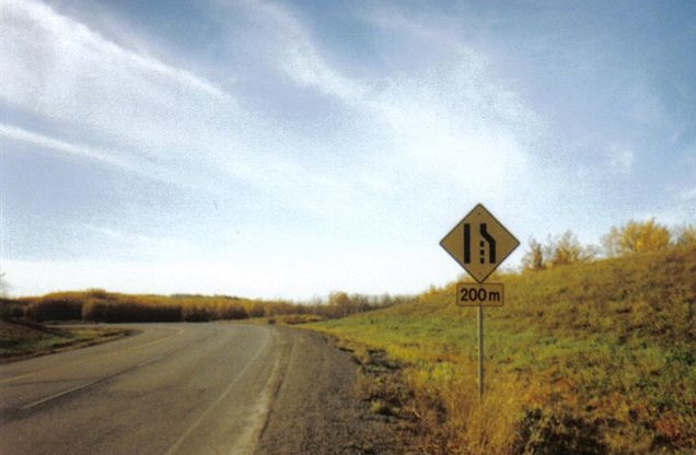 You are so happy that you may be tempted to get off the bike and hug the sign. Maybe hold off of bit until you are really there at Sign 4: Right Lane Has Ended!