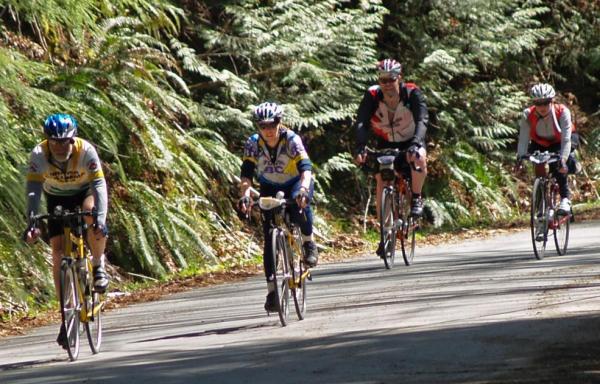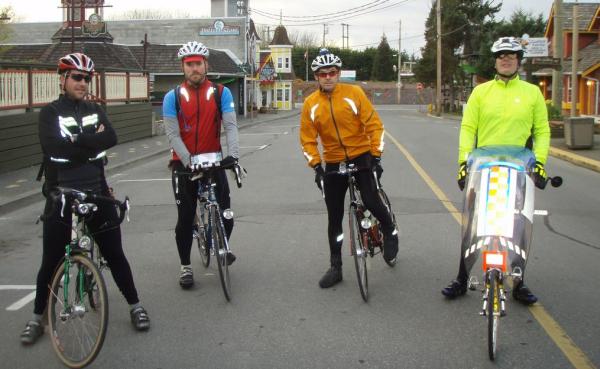 "Eau de Hell" Week 2008 Organizer's Report The 2nd Eau de Hell Week looked promising from the pre-ride experience. Below freezing night temperatures, cold blowing rain for major portions of each ride and only one disappointing brevet where it rained just prior to the start and again at the end. Good chance of sleet, hail or snow for the Eau de Hell Week. Unfortunately, the weather person did not cooperate and informed the general public that pleasant weather was forecast for the Eau de Hell Week. Avid Eau de Hell Week riders cancelled out in the 'hundreds' after learning that the weather would not be challenging. Those 41 riders who did decide to make the best of a bad situation rode the 200k in temperatures hovering around 21 C (70F). The next day, things did not improve much. 15 riders challenged themselves over the 300k with 11,500 feet of climbing with nary a drop of rain in sight in temperatures hovering around 15 C (60F). A day of rest, then 7 riders were left to see if the Devil could stir up trouble. Not a chance, again, no rain, hail, snow or sleet. Temperatures were about 10C (50F) - (any one see a trend beginning with the temperature?) However, one of Hell's Gremlins did manage to eliminate a left turn and the road to be turned onto - which caused some distress amongst the riders. Alex, our enthusiastic Club Treasurer, thinking the organizer had finally put a challenge in the ride, rode up a gravel hill until he could make no further progress ... Dave, our lone recumbent rider on the EdH brevets ended up in a winery, but determining that the wine was not of suitable quality to his sensitive palate, he turned around and eventually found his way. Manfred and two buddies, Scott & Jeff spent some time in heated discussion trying to determine which of three directions they should go, when a local came along and pointed them in the correct direction. (During the 2007 Eau de Hell Week, in this same general vicinity, Manfred had a less cordial response when he asked directions from locals in a pick-up truck - they might have been smoking 'loco-weed'!) Another day of rest - warm sunny temperatures - just hanging around charming Chemainus, town of murals and cafés. ![]() 600 km Starters... Finishers Finally, the EdH Ride for Gold 600 - the final 200k of which in last year's edition, riders determined was the worst ride of their life! Once again, the weather was promising, although a little chilly (about 8 C (46F). 60% chance of rain with wind - YES, the spirit of Eau de Hell Week has come to be with us again!! Unfortunately, the EdH spirit was a little weak, and the riders all commented on the spectacular bright moon appearing between clouds scudding across the night sky as they returned from Gold River. This year's Eau de Hell Week finishers are: |