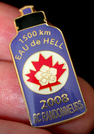 Jenny Watson & Patrick Wright - Tour de Cowichan Valley 200k organizers And just as a reminder, we have a very hard working group of Executive riding members ... give them a pat on the back from time to time, or maybe buy them a coffee!! In particular, think of Cheryl Lynch who ensures the results are validated for the ACP; Eric Fergusson who posts the results on the web in record time; Karen Smith who ensures that the brevet pins are available and Alex Pope who ensures our Club remains financially solvent. On Vancouver Island, Ray Parker, Vancouver Island Brevet Coordinator, works hard promoting randonneuring; and ensuring that we organize quality brevets. ![]() On the Road to Gold River ![]() Big Challenge... little prize Dave Cambon's finishers pin PROMOTION: PLAN TO RIDE MORE VANCOUVER ISLAND RIDES - IN PARTICULAR: 1) HARE and TORTOISE 1000 K - 3 AM START, June 21 - Victoria-Port Hardy-Victoria (formerly known as Vancouver Island End to End) Special Hotel rate at the Port Hardy Inn ($80 + tx. - mention Bonner ride - box lunch upon advance request for a late night snack - small charge) 2) ULTIMATE ISLAND EXPLORER 2000K - 3 AM START AUGUST 12 - in addition to using your motel in Victoria, for a fee to be determined, drop-bags will be transferred to drop-bag rooms in Parksville and Campbell River, each can be accessed 3 times. Parksville (before riding to Tofino; after returning from Tofino and on the way back to Victoria); Campbell River (before riding to Gold River; after riding to Gold River; and returning from Port McNeill. More details later. 3) Hills are Alive 300 (easiest of the Island 300's, only 10,000 feet of climbing!) 4) Highway to Hell 400 (fast, easy highway slopes, 10,000 feet of climbing) 5) Ray's Surprise 600 Vancouver Island Brevet Schedule: http://www.randonneurs.bc.ca/schedule/sch_vi.html Safe and happy riding! .... Ken