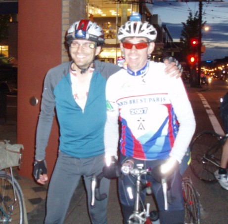 Gold Rush Trail 1000 The Riders:Nigel Press was back to do his second 1000 after last year's remarkable 47 hour effort. This was Sorrento speedster Ryan Kurz's first ultra-distance event - he needed it to qualify for the Rocky Mt 1200. Michel Richard was doing this as an experiment to see if it was possible to complete an ultra with no training. And me... out for my annual 1000 km self-flagellation ritual. ![]() Ryan - Nigel - Eric - Michel The Route:The Gold Rush Trail route was Michel's idea, proposed and mapped-out eight days before the start, replacing the scheduled Flatlander 1000. The route loosely follows the path to the Cariboo gold rush, and is a nod to the BC's sesquicentennial. The Ride: Despite intermittent head winds and light showers all four riders made good time to Lytton (260 km), and were rewarded with tailwinds through the hilly, roughly surfaced Highway 12 to Lillooet (324 km). It was very weird to be on a ride where Michel was the slowest rider - well, he was supposed to be the slow anyway. With a combination of efficient controlling and steady riding Michel was keeping up, and we found ourselves all together on a patio in Lillooet in the early evening dining on pizza, veggie subs and smoothies. Also weird... all four riders turned out to be vegetarians. Michel was first off to face the night (a short night - June 21) from Lillooet to 100 Mile. Ryan and Nigel rode away from me when the road tilted up after Lillooet. They seemed to be riding more or less together but there was no plan for any of us to ride together. By chance we found ourselves, regrouped at Clinton (~430km). The Clinton to 100 Mile stretch was a good one to do at night. The shoulder is a disaster, and so the low traffic levels meant we could steal a little good road space. Nigel and, surprisingly, Michel were driving this train towards our first dawn, while Ryan showed excellent manners by riding a few wheel lengths off the back because of worries about weaving into other riders. We arrived at 100 Mile (506 km) around 6:30. A very sympathetic waitress at Smity's didn't seem to mind our clothes scattered all over her floor, our 23½ hours-of-cycling fragrances, our persistent demands for more jugs of water and the fact that we kept slipping in and out consciousness. Now back to Vancouver... The new day seemed to help wake everyone up. Nigel blew up the hill out of 100 Mile and that was the last I saw of him. Ryan was up to speed again also, and was soon a dot on the horizon. My left knee had been niggling through the night, and somewhere after Clinton it blew. My ride was more or less over. "Less over" because of the usual problem: how do you abandon in the middle of nowhere? So I Ibuprofened the 400 km back to Vancouver. The ride became rough for Michel also around the 600 km mark. He's a great climber... but not on this day. Finally his lack of conditioning caught up to him on the relatively gentle climb from Hat Creek up to Pavilion Lake. The descent from Pavilion is particularly nasty - it's one of the most poorly maintained, sloppily patched roads you're likely to find anywhere. How do you find a good line through a section of pavement that has no good line option? Sometimes you just have to grip your handlebars hard and take the jolts. Michel and I rode together a little bit, but mainly separately through to Lillooet and over the agonizing 62 km stretch of Highway 12 to Lytton, and then we spent 9 hours off the bike at the Lytton Hotel trying to reboot. On that Highway 12 stretch (my vote for the worst cycling road in BC, by the way - yes even worse than that Pavilion to Lillooet section), I was surprised to be passed by Ryan. I thought he was way up the road. He had fallen asleep in a restaurant in Lillooet. Apparently a (another) waitress took pity. She went to her car to retrieve a pillow so Ryan could sleep more comfortably. Ryan was having Achilles problems, and said, as he climbed away from me, that he was babying it. Further up the same road he was DBB (delayed by bear), TWICE. They weren't around for either me or Michel. The wind (headwind) was howling through the canyon when Michel and I turned in at Lytton. Somewhere out there Ryan and Nigel were fighting this monster, and maybe facing down hallucinations of crazed prospectors. The next day Michel and I rolled home over the comparatively easy Canyon and Fraser Valley roads to Broadway and Granville where Karen and Siân, armed with cowbells, were waiting to cheer us in. 62 hours, 52 minutes. Michel had the usual aches and pains but rode strongly through to the finish. With some hesitation I have to report that the results of his experiment suggest that you don't have to train to ride a 1000 km brevet... well, if you happen to be Michel. As for me, I spent the entire last day junked up on generic Ibuprofen. The stuff really works, but my knee is shot, and my hopes of riding Rocky 12 in July have evaporated. Darn. Over 10 hours earlier Nigel and Ryan had arrived. Neither of them had seemed to be in that much of a hurry out on the course, but they had impressive times - Nigel's 50:36 and Ryan's 51:07 are two of the fastest Mainland BC 1000 km times ever, and on a very challenging route.