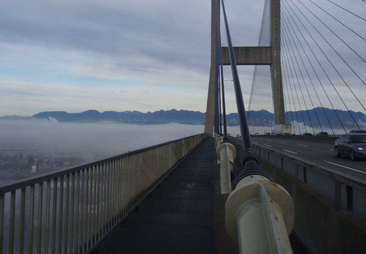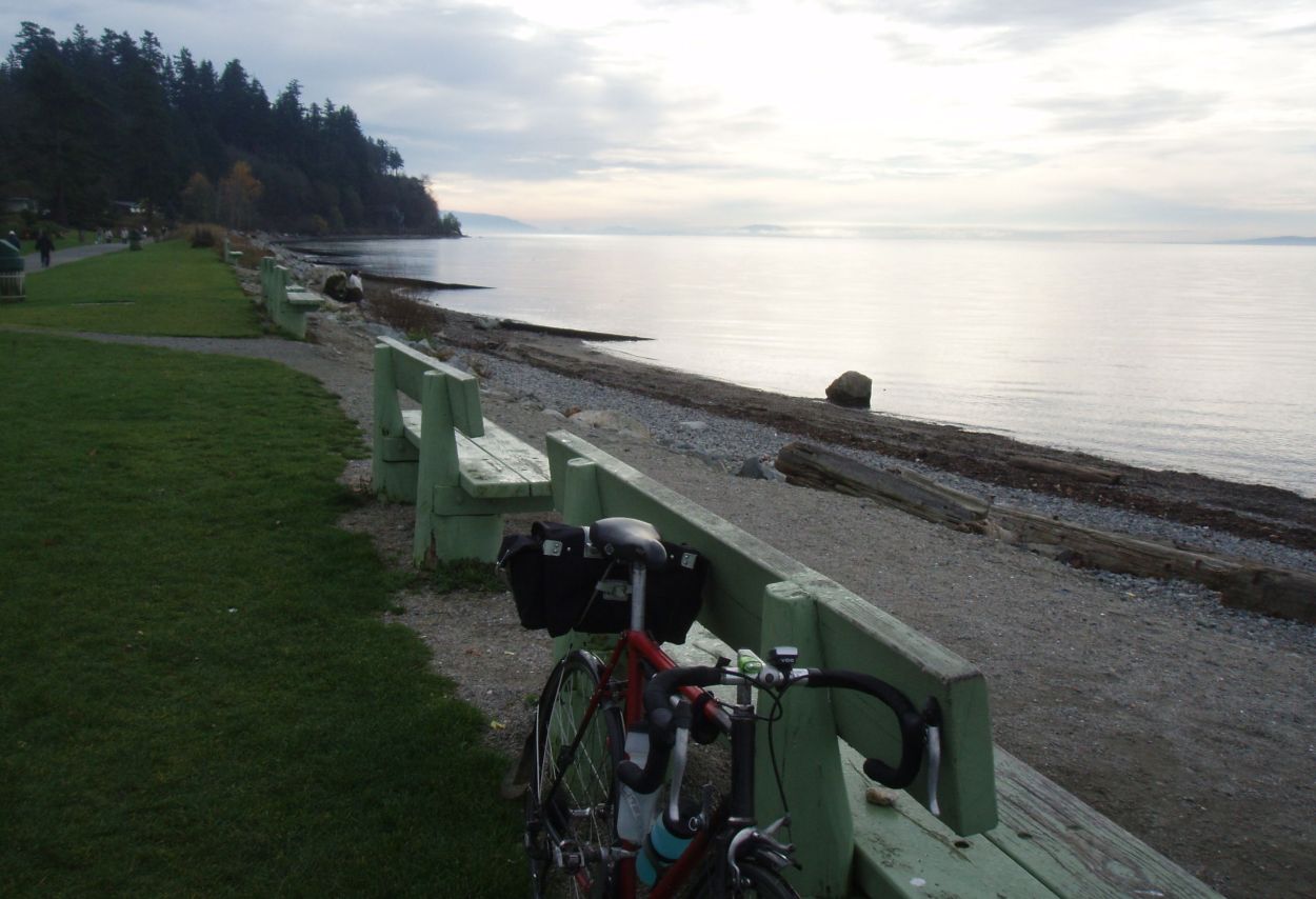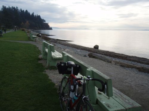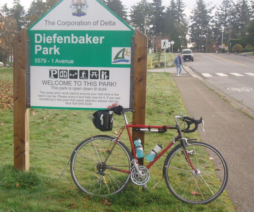 ![]() Click to Enlarge Photos: Eric Bean Bros. The fog was very thick in low-lying areas well into mid morning. Towards Tsawwassen, where the fog was particularly heavy, I lost my bearings, went off course, and found myself on the wrong road into Tsawwassen. No idea where I went wrong. A confusing moment. But soon the fog lifted everywhere to reveal a perfect day - sun and cloud, unseasonably warm temperatures, no wind. It was a pleasant ride over roads familiar to me from many summers spent at Crescent Beach. It was interesting to ride these roads this time of year however - with the leaves off the trees there were sight lines I hadn't seen before. The control in Tsawwassen is at Diefenbaker Park and there's no nearby business. I wasn't sure what to do so I took a picture as proof of location. (I guess I could have asked that guy coming towards me in the picture to sign my card.) There's a fair bit of flat on this course, but as the route's establisher Bob Koen had reported after his ride, there are hills also, including some steep grades. Lots of construction on the route at the moment, but a great view of the very finished looking Golden Ears bridge from 96th after Ft Langley. In Fort Langley there was a large and bustling movie set. They were shooting a Christmas movie: a Santa's village, giant candy canes everywhere... I almost hit a US Postal Services delivery truck on Glover. The route is this spring's Lower Mainland 200 with the start moved to Kerrisdale. Along with Bob, three other riders had ridden the inaugural permanent version of this route last week - Ian Attewill, Susan Barr and Jacques Bilinski. I would certainly recommend it, though when I rode it on a week day, truck traffic was very heavy in places (on 96th and on River Rd) so maybe this is a better weekend route. ![]() Crescent Beach at 94 km