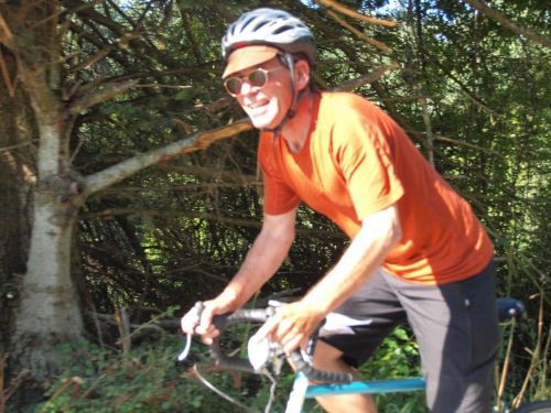 ![]() Kevin... August 16, 2008 Photo: Stephen Hinde Alimento en una Bicicleta The date August 16, 2008 is significant for three reasons. First, it is the 31st anniversary of the death of Elvis Presley. Second, it was Madonna's 50th birthday. And finally, it was the date of the Tour of Nanaimo & Cowichan 200. Now, let me say this about Elvis: although I am a Beatles fan, I'm just not quite old enough to have developed a genuine affection for Elvis' music. Many riders in the club are a bit older than me and will appreciate the influence of Elvis on the Beatles better than I, and would have better witnessed the transition from the rockabilly-influenced beginnings of rock and roll through to the prog-rock leanings of Sergeant Pepper a decade later. (Harold Bridge, of course, can lay claim to having met Georges Frederick Handel whilst both lived in London during the early 1700s, but I won't even try to compete with that.) As for Madonna, I ask anyone reading this to please not disclose my whereabouts to her. This is actually supposed to be a ride report on the Island Summer 200, but I find it a bit tedious to merely record obvious details like weather (hot), terrain (hilly), and number of riders (six). Rather, I'd like to focus on what made this particular ride unique of which there were three things: 1) The organizers, 2) A particular stretch of road, 3) An experience involving Mexican food that is not likely to be repeated again soon. I will discuss each of these in order. One of the best parts about riding any event organized by Stephen and Carole Hinde are the organizers themselves. They faithfully patrol the route throughout the event, seeing riders through as many controls as they can, and rolling up in their car alongside riders between controls to make sure all is well and warning of what lay ahead. At one point, they eased their car up alongside and through the open passenger window Stephen asked how I enjoyed the hills I'd just grunted up. I told him I enjoyed them immensely. "Good!" he said. "Then you're going to love this next part!" The particular stretch of road where this exchange occurred was at the start of Genoa Bay Road, a 7.3 km stretch of non-stop hills at every conceivable grade from steep to stupid. There was some relief from the relentless climbing as the road is mostly engulfed by a leafy canopy of shade, and on this particular day which was very hot, the cooling effect of having the sun blocked overhead was enough of a relief that I really didn't mind that the climb underfoot was something above ten per cent. In fact, I found myself actually slowing down whenever there was shade to be had regardless of the grade. In double fact, whenever a stretch of road was shaded, I secretly hoped that the grade of the climb would increase dramatically so that I could slow down and linger in the relative coolness. Numerous times I manufactured excuses to get off the bike while in the shade just to enjoy not being cooked to death. When one does not want to lose face, even to oneself, the reasons for stopping become rather lame, but one needn't feel guilty as long the excuses one makes for dismounting are creative. I think I acquitted myself in the creativity department reasonably well; among the things I said to myself immediately prior to getting off the bike were: "Is that a yellow-bellied, red-throated, European barn swallow on that branch over there?" "I believe they're playing the national anthem." "Better check those dust caps." Aside from the lovely scenery of forests, inland lakes, and rural back roads, the visuals of this particular ride were enhanced by the sight of hundreds of other cyclists riders all going in the opposite direction to which our six participants were headed. Apparently, there was a charity ride of some sort happening. As I passed by their gathering place at a park near some bay (I forget where, exactly), there were hundreds of cyclists all picnicking and having a lovely time. I searched the scene for a hint of exactly what organization was sponsoring the event and spotted a huge banner stretched between two trees that read, "S.P.M.S". Now, I know what PMS is, but I didn't realize that there was a society for that much less one that holds charity rides. I caught up with the other two Vancouver-based riders, Nigel and Darren, at the final control as they had finished about a half-hour ahead of me. We decided to ride back to the Departure Bay Ferry together and stop for Mexican food on the way. After locating a nice little restaurant on a hillside overlooking the bay where the ferries pull in, we ordered our food from the comfort of an outdoor patio table. Then we noticed that the boat we thought was going to leave at 7:30 was arriving thirty minutes earlier than we'd anticipated which meant it was going to leave a 7:00 PM and that we wouldn't have time to eat without missing the ferry. We quickly asked the waitress to make our order to take out. Some ten minutes later we found ourselves standing on the sidewalk outside the restaurant each with a styrofoam plate wrapped in tinfoil in one hand, a bicycle in the other. Riding a bike down a steep hill with one hand is difficult at the best of times, but while balancing a plate of burritos with the other was something we quickly realized wasn't going to work without risking broken bones or, worse, spilt salsa. Nigel figured he could put all three plates of food on top of his handlebar-mounted Berthoud bag and could hold them in place with one hand while he rode with the other. If anyone can ride one-handed downhill without spewing the pavement with guacamole it would be Nigel, but even so I didn't want to see him risk his safety much less my dinner. I happened to have a length of thin elastic cord that I carry in case I ever need to strap something to the outside of my saddle bag and that proved just the ticket to secure the stack of alimento caliente y picante. We made the ferry with ten minutes to spare and,