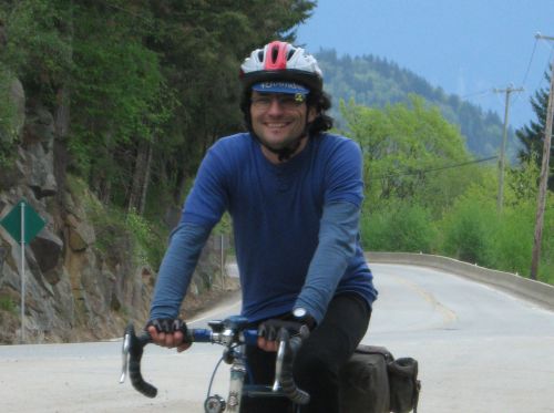 ![]() Michel on Woodside Mt... before the monsoon Photo: Deirdre/Bob A Few Sprinkles... A few sprinkles in late afternoon! Ha!! How about steady rain starting at 8:30 pm. Around 9:00 pm, pouring rain. By the time we hit the Pitt River Bridge around 10 - 10:30 pm it was monsoon rain. We had to hide under the highway overpass as we couldn't see or breathe as the rain filled our nostrils. In the minute we were stopped, the flood waters rose well above our ankles. It didn't matter though because our feet were soaked anyway. I can barely swim so we had to continue on before it was too late. Every passing car was hurling curtains of water at us, but we hardly noticed. In fact in our increasing madness, we laughed even harder. The rain finally eased and then eventually stopped along the Barnet Highway around 11:30 pm. Ali, Karen, Ron and I have done quite a few brevets. I think we know of what we speak. This was without hesitation the nastiest rain any of us have ever ridden through. Just thought you'd like to know. Michel