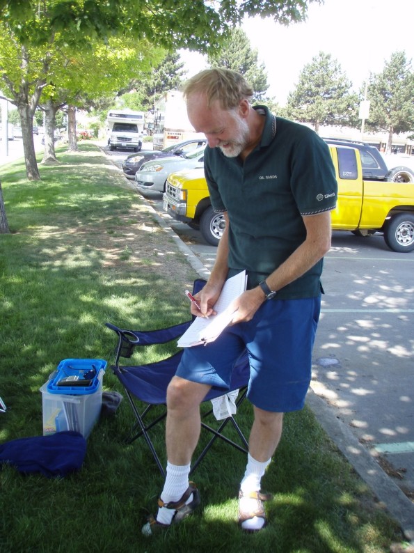 Rivers, Mines and Vines The Southern Interior 600 route was ridden June 13/14, 2009. This route is a new but challenging one - planned to accommodate riders who live nearby as well as to provide some alternatives on interior routes. It has at least 4 substantial climbs through mountain passes. Barbara Boonstra helped with the route planning and execution. I am much appreciative for her help. Temperatures on the route ranged from 8-10 Celsius in the early morning to afternoon highs of about 30 degrees in the Okanagan and Similkameen valleys. Thundershowers proved challenging for riders on parts of the course. Eight participants left the Orchard Park Mall in Kelowna, at 06:00 to complete a short introductory climb through the orchards and back down to Mission Creek before heading out on Hwy 33 for the big first climb on the way to Rock Creek. Riders were challenged on the windy descent from Anarchist summit to Osoyoos and often by headwinds as they traveled along various parts of the route. A short but steep climb on Twin Lakes road didn't escape the attention of any rider. Night temperatures became quite cold with meltwaters filling the Similkameen river as well as clear overnight conditions. The pothole on Twin Lakes road had been filled - but as Ken Bonner reported - "there were others..." This section of the route was rough but scenic. All participants were required to obtain selected information from a sign at a self-control on the route in order to prove passage. They proved cognizant enough at 470 km to accomplish this task. I was taken with the determination, and dedication that all riders demonstrated. Ryan Kurtz has now learned intimately - the importance of arriving at the finish WITH a control card - as do the organizers value the information contained upon it. His remarkable story is one of grit, angst, and finally - success! He reported riding as fast as he could in the latter stages of this ride - to try for a good time - and to stay awake! He barely managed both and achieved some rather stellar velocities in two directions! I was truly impressed with the map, elevation profile, and light run times all displayed between the brake hoods of his bicycle as a measure of his preparation. Doug Fox and Peter Mair teamed up to ride together and looked like they had a good time. Doug duly reported on the course being very challenging. That's good! Unfortunately, Peter's truck had been broken into during the event and was later towed for service to the ignition and locks. Both Peter and Ryan lost personal effects - a most regrettable occurrence. Doug Latornell and Susan Allen rode at a steady pace to ensure their arrival at the finish - given the hot conditions. Their presence on the course was much appreciated by Trevor Taylor who overlapped with them during his first completion of the series. Trevor completed in good time - arriving with his canvas bag with cotton drawstring closure securely attached to his vintage machine. Well done. Ken Bonner and Bob Goodison posted their usual speedy times and arrived as planned.They were found to be in much better shape than Ryan at the finish control. Thanks to all of you. I had a good time supporting your great efforts.