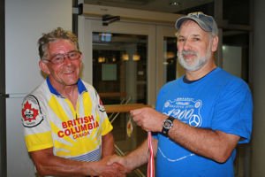 ![]() Ken Bonner receives his Granite Anvil medal from Jim Morris, Ride Organizer. Ken was first finisher in 63:39. 2009 Granite Anvil 1200 - Time Results Time results haven't yet been posted on the event web site, but the finishing times can be calculated from the rider tracker page. Here they are: (internal link)