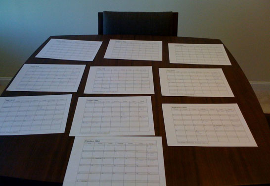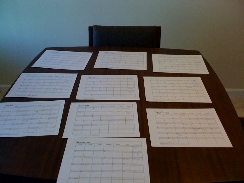 So here is the dining room table with the calendar laid out on it and as many rides as I can think of written on it. Ironman tri is on in the background as I try to figure out priorities etc. Thanks for putting up the BC schedule for next year- I think it helps :)
