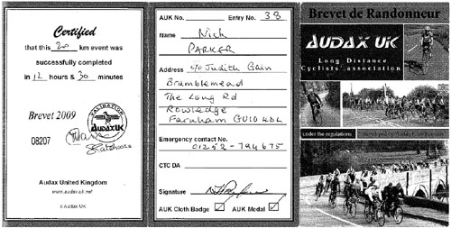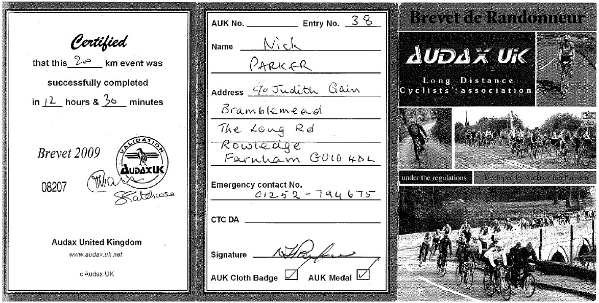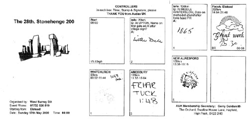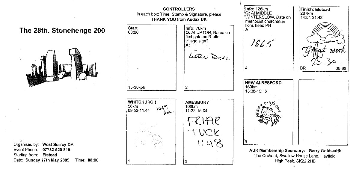 New member Nick Parker rode Audax UK's Stonehenge 200 in May. Just for fun here's his control card: