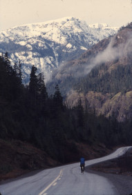 My cycle tour was over. However, there would be opportunities to do some family cycling on VancIsle during the camper tour. My wife's bike had a child's seat. We pottered "up Island", did a detour to Buttle Lake and on to Gold River. Being an "out and home" journey I was able to do that ont' bike. It was an impressive ride: almost no traffic, perfect road surface, spectacular scenery and glorious weather. Going by the spotless black asphalt, I got the impression my tyre marks were the first on the new surface.
