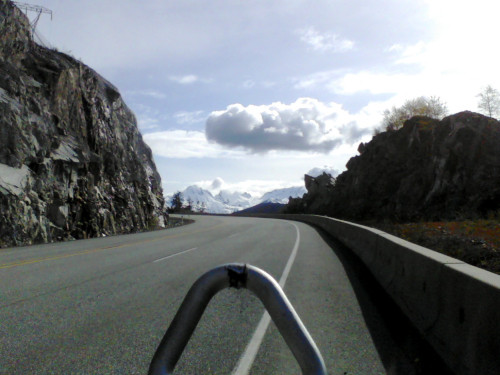 Pemberton 300 A surprising number of riders (51) showed up for a cold and extremely wet start to the challenging Lower Mainland Spring 300 km. Within a couple of hours the sun appeared and so did the winds. All the riders battled strong headwinds between Pemberton and Whistler. The total elevation gain was far more than estimated - two riders reported 3600m at Brackendale with 67.5 hilly kilometers still left to ride. Over the last year, with the improvements to the Sea to Sky, many riders had requested this route. The scenery was wonderful but the condition of the shoulder is still questionable (and inexcusable) in a number of locations. Nearly all the riders enjoyed the challenge but for new riders (and some not so new) it was an extremely difficult 300. It was a relief to see the last riders arrive shortly before 2 am and have everyone safe and accounted for! Many thanks to our enthusiastic volunteers: Jacques Bilinski, Greg Todd, Nana Todd, Craig Premack, Maureen Premack, Barb Gillanders and Dave Gillanders.