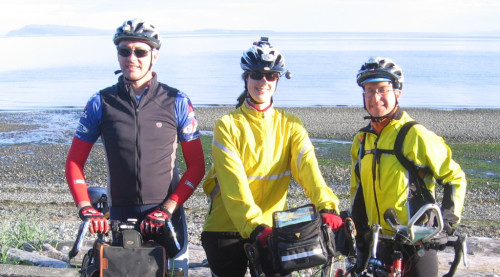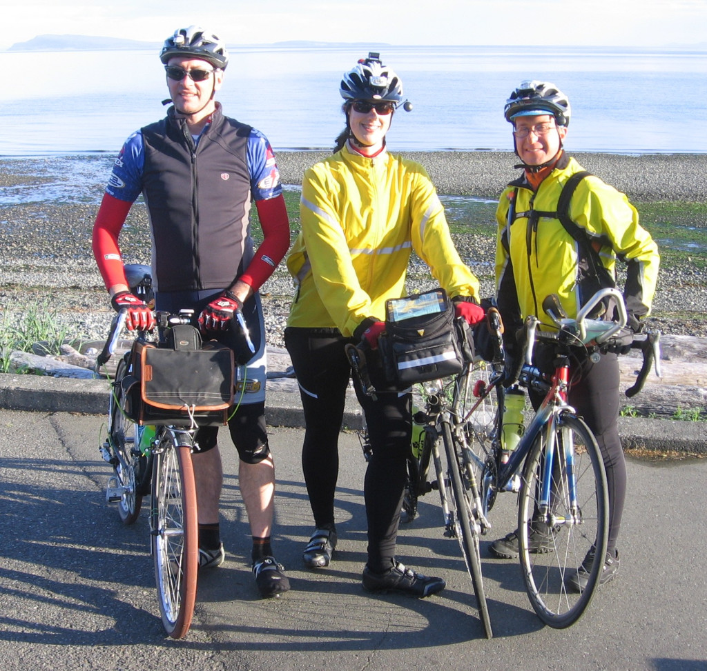 Lee's: This Saturday marks the inaugural running of the Pacific Shores 200. Although this piece of roadway is very familiar to most randonnees who have ridden on VancouverIsland, this is the first time this route has been run in isolation. Following a route laid out by Graham Fishlock as a permanent, it offers the following: 1. Great scenery overlooking the upper reaches of the Strait of Georgia. 2. Relatively flat terrain (hey this is the Island after all). 3. Relatively light traffic, although the traffic does tend to occur in bunches. 4. Nice shoulders for frequent two up riding. 5. Many potential refueling spots. 6. Easy navigation. After Brynne and Mike Croy generously offered to accompany me on the pre-ride on June 5th, we met in Qualicum Beach at 7 am and started north along Highway 19A. The day was pleasant, weatherwise, with a light head wind all the way to Campbell River. We saw several eagles and turkey vultures soaring effortlessly on the breeze. We saw California quails bobbing comically along the roadside. We even spotted several deer. The breeze swung aound and freshened once we made the turn at the Campbell River control and blew in our faces all the way back to Qualicum. After a couple of stops to remedy a slipping seat post on Brynne's bike and a caffeine stop in Courtenay we rolled into finish after nearly 10 hours of riding. Our slightly sunburned trio seemed happy to have returned in good spirits and this ride was certainly a great improvement on my last pre-ride! This was also the first ride on my newly built up Velo-Orange Polyvalent (with 650b wheels) and it passed with flying colours! I hope to see as many members as can make it on June 12th. Cheers Lee