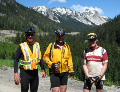Rando Rookie This past weekend I completed the Merritt Loop 600K to cap off a successful Lower Mainland Spring Brevet Series. After completing challenging climbs in the 300 and 400K brevets I was expecting a difficult climb on the Coquihalla. Having ridden the Hwy 7 section in previous events I knew what to expect and made good time riding from Mission to Hope with Ron Penner and Jerome Lavigne. Ron had the highest top speed down Woodside with 77K, lots of fun! As a rookie I'm always thinking of ways to improve and learn about the sport and one of the things I tried to practice during this event was minimizing my off bike time. After a meal at the control in Hope I got back on my bike as soon as possible and started riding towards Othello Road where I joined Greg Todd and met Bob Koen, Manfred Kuchenmuller and his friend Alard Malek. We took a short break together at the snow shed on the Coquihalla where the toughest part of the climb begins, I set off and before I knew it I'd reached the summit and began a bit of a descent towards the Britten Creek rest area. When I arrived at the Britten Creek control I had my card signed and took off right away, lots of downhill followed to the Coldwater road exit where the route became very up and down with rolling hills into Merritt. In Merritt at the 7-11 I said hello to Ron who was just getting ready to head out and spent about 45 minutes eating cold pizza and talking to my wife on the phone. As I was getting ready to leave Manfred, Alard, Greg Todd and Dave Gillanders arrived and went to Subway for something more substantial to eat as Manfred and Alard had to ride 140K to their motel in Boston Bar. The best part of the ride for me was Hwy 8 to Spences Bridge. I rode alone and it was beautiful, up and down but mostly down, making it easy to carry lots of speed. I also seem to find renewed energy in the evenings; I think it was just after 11:00 when I reached the secret control at Spences and 11:30 when I reached Lytton. ![]() Guido, Alard & Manfred at the Coquihalla snow shed I had a lousy sleep and I was annoyed that I had frittered away almost 6 hours in Lytton not departing until 5:15. I knew I had to consume at least 1000 calories before going to bed so I drank a Gatorade post work-out protein shake (500 cal), two Gatorade pre-workout drinks (330 cal), ate some beef jerky and more cold pizza. By now I felt like I had swallowed a basket ball. I watched some TV, turned out the lights at 12:30 and tossed and turned for 4 hours. When I woke I ate two breakfast cookies and drank two 473ml bottles of AMP orange juice with caffeine. I finally got out the door and on my bike at 5:15, Jeff was outside eating cold pizza and he offered to take a drop bag for me, I am still learning how the drop bag system works. I don't usually have stomach problems but the more I rode the more I started thinking I was going to end up like Alex Pope in the previous brevet "Beyond Hope". Lots of up and down and a climb up Jack Ass Mountain, I started feeling better and I think arrived at the Dogwood Cafe around 11:00ish. Jeff Mudrakoff highly recommends potatoes as Rando fuel so I took his advice and ordered an extra side of hash browns smothered in cheese with my breakfast. I felt so much better after that breakfast! Manfred, Alard, Jerome, Dave Gillanders and others arrived as I was getting ready to leave. I headed down the road and a little while later took the exit to the Haig Hwy. I needed to call my wife and let her know I was still alive, no cell service in the canyon, so I stopped at the rest stop on the Haig Hwy. I was on the phone when the group from the Dogwood Cafe went by. Damn! I don't want to be last I thought, I used the washroom got on my bike and rode the second last leg to Mission. It had started raining hard and I was soaked by the time I got to the Tim Horton's where the group that had passed me earlier where hiding out from the rain. I got my card signed and realized I had spent my last cash at breakfast so I put my raincoat on, drank a Boost plus and jumped back on my bike to ride the last leg to the finish. The traffic through Mission and Maple Ridge is pretty nasty in the afternoon, though the last bit west of the Golden Ears Bridge has a nice wide lane all the way to the Pitt River Bridge. Like Ron I had some trouble when I came off the pedestrian bridge in Poco at the end of Patricia, I rode right past the trail and ended up meandering down some dead end streets before I found my way. Guildford and Murray is a nice route to the Barnett Hwy, but by then I was starting to tire, I made it back to the Knight and Day with a respectable time of 37:33. Best of all! No punctures in my Gran Bois Hetres for the entire Brevet Series! After suffering a flat during my very first brevet, the Early Bird, I became very paranoid about running over any kind of debris. Randonneuring is a lot harder than I thought it would be, but I'm having a blast! Thanks to Jeff Mudrakoff and all the organizers and volunteers of the Lower Mainland Spring Brevet Series.