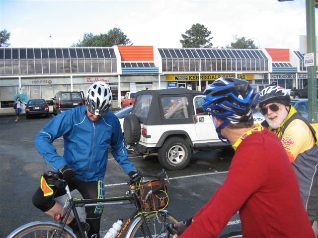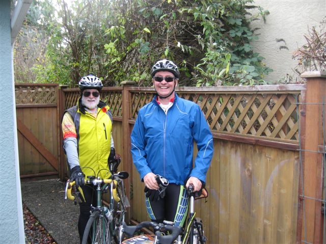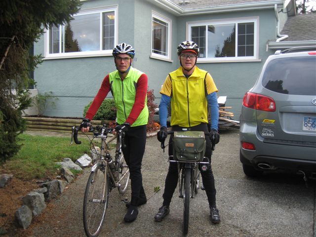 Victoria - November Social Ride It was a nice sunny day when a small group of the Island Randonneurs met for a social ride and meeting. Patrick came for a short chat at Timmies, before Philip, Lee, Dave, Lindsay and I set out. We were also met by Lorraine along the chosen route. We took a nice scenic tour of the Saanich Peninsula, up Lochside to Mitchells Farm, over to Brentwood Bay, and back to my house via W. Saanich and Interurban (42km). Thanks to my lovely wife Brigitte, Philips wife Lorena, Dave, and myself (having excellent baking skills I made muffins!), we enjoyed a feast of goodies (mostly healthy), coffee and tea. It was great to chat with the group about the upcoming year. Thanks to Lee for stepping in to take the lead. We looked at the tentative schedule for next year, and those of us present, added our names to the volunteer list to help make next year a success on the Island. In the future, as Lee moves toward finalizing the schedule, Brigitte and I are happy to offer our house as meeting place for the Island Randonneur group. Anytime a group needs a place to work on plans, socialize etc., we will be happy to host. Hope to see you out on the bikes in the new year. A few photos: