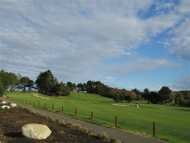 Peninsula 200 RT 25, of the permanent list, called the Peninsula 200, proved to be a fun ride. If you were unsure whether or not you liked a particular section of road, this ride allowed to you to revaluate the road by doing the same section in the opposite direction. Philip and I exercised the "flexi perm" rules and started this ride at a control closer to our houses. At 10am we set out with the temperature a nice CRISP 3C. The sun came out, and by the time we broke through the tweed curtain into OAK BAY, it was a sunny and balmy 8C . The wind certainly help keep things on the cool side, and on the 3 trips UP the peninsula it was a head wind. On the three trips DOWN, it was a tail wind, and when zigging and zagging across the peninsula a side wind. Thankfully, precipitation was minimal with a few snow flakes in the morning, and some spitting rain in the afternoon. As we rounded the top of the Peninsula on Lands End Rd, the sun disappeared and for the next 6 hours the temperature dropped to a frigid 1C but sometimes got as warm as 3C,only to plummet to 1C again. This was certainly not our fastest 200 but it was our coldest. Thankfully, some Merino Sheep had given up their wool, and with three layers on the top, as well as the socks, I was relatively warm. It was also our first permanent ever, and so we were happy to accomplish this one on a WINTERY day in Victoria. Although, "wintery" may be up for debate especially if see the pictures of the golfer playing a few rounds!