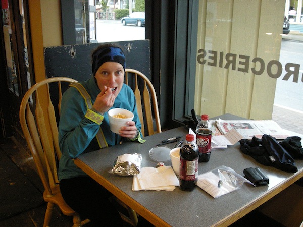 Fraser Valley Flatlander 203 km A 200 is HARD at this time of year! The short days, cold temperatures, frosty roads and sand filled shoulders can all make a measly 200 quite tough. But it had been 3 weeks since our last 200 in November, and Michel and I thought we would try it again and keep our quest for the Year Rounder alive. The weather on the actual day can make or break your ride and we had been checking the forecast obsessively for days. Both Environment Canada and the Weather Network said about 0ºC with snow flurries or light rain starting in the afternoon. Environment Canada predicted winds from the east gusting at 70-90 km/hr. The Weather Network said 10-20 km/hr. Apparently the weather forecast you choose is also important. We chose The Weather Network. We started at 7:25 am and had no time to waste as our first control was in 8.6 km. Chilliwack Lake Rd was frosty so we had to be cautious. We also had a headwind and we made it to Pointa Vista with only 6 min to spare. Then the winds helped us all the way to Fort Langley. It seemed effortless to get there. Although it was zero degrees, the effort we did put in was enough to keep us warm. We did see ice in the ditch along River Rd and we were cautious again. We made it to Fort Langley in good time and good spirits and had the best ever Mac & Cheese at the IGA. After our turn around, the real work began. We were met with a strong headwind and it was bitterly cold on the face. That became especially evident on North Parallel Rd. Every time I looked at my spedometer along North Parallel it was between 14-17 km/hr. And that was pushing hard. If you let up on the pedals, you slowed even more. That was a tough stretch, both physically and mentally. We probably stayed at Yellow Barn too long, and as we left, we both felt chilled for the first time. Then the rain started and it felt like the temperature dropped. As the sky went black, it felt like the temperature plummeted. I rethought the toughest part of the ride. Surely it was now - cycling in the dark, into a headwind with driving, freezing rain in your face. My cycling gloves were not keeping my hands warm or dry. I had to stop twice along Camp River Rd to wring out my gloves and try to warm up my hands. A couple of times as I tried to move my hands on the bike, my gloves made crunchy noises. I think the fabric was starting to freeze. If we had a flat or any mechanical, I don't know that our hands would have been much use. When we finally made it to Popkum, our penultimate control, we only had 20k to go. You'd think that we would be in and out and put this ride to rest. But we took forever to warm up and thaw out. Both my hands and my feet were screaming and it took a while to calm them down. Michel offered me his dry wool gloves, with gortex lobster mits over top. He agreed to finish the ride in my cold, soggy cycling gloves. Chivalry is not dead! Merci Michel!! : ) When we eventually went back outside, the rain had stopped. Our last 20k wasn't too bad and the wind was at our back again. We finished the ride in 11:08. We'll take it. Two down, ten to go...? Some post ride thoughts: