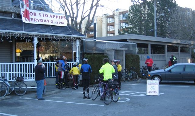Victoria New Years Day Populaire A spectacular New Years Day sums up the amazing weather to grace our ride. It always takes "someone" to step up and make things like this happen, and today it was Mike, Brynne and their son Steve, that took the initiative and organized this ride...and for that a BIG thank you goes to them. It was one of those unexpectedly beautiful days and the route chosen for this first day of January, 2011, took us past and through some of Victoria's most scenic vistas and neighbourhoods. A great turnout of new and "used" Randonneurs gathered at Christies Pub. It was certainly cold, with starting temperatures below freezing, but winds were light and the bright blue sky and brilliant sunshine helped keep the mood light and fun. We headed down along the water, through the Uplands, with the snowy white peak of Mount Baker always just in our view...so close you could almost touch it. Up the Saanich Peninsula via Lochside Drive we pedaled to Mt Newton Cross Road and our turnaround control. After a quick stop and short chat with some new faces, doing their first Rando event (we encouraged them to come out for more!!!) Philip and I headed back down into town. It was now a balmy 3C so my cheeks warmed up and my toes felt less like popsicles...Mike and Brynne met us back inside Christies Pub and we wished them a Happy New Year. Philip and I then headed to Willows Beach for a one hour out door workout with our workout group (which includes our lovely wives) and to end a great day, took a quick "swim" in the ocean. A great way to start 2011, and looking forward to many more long rides ahead...Happy New Year to all!