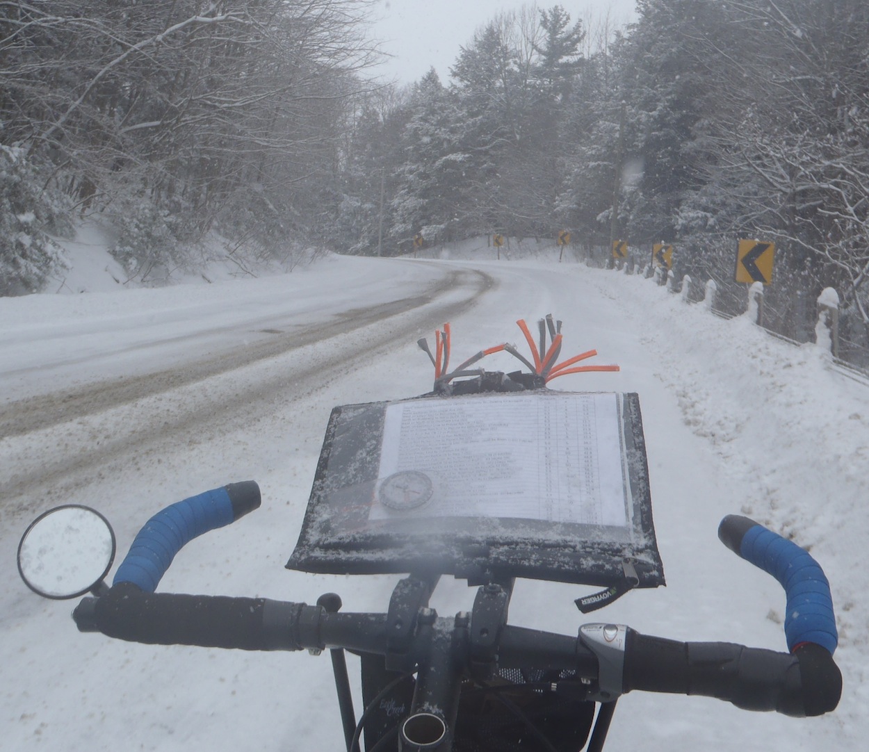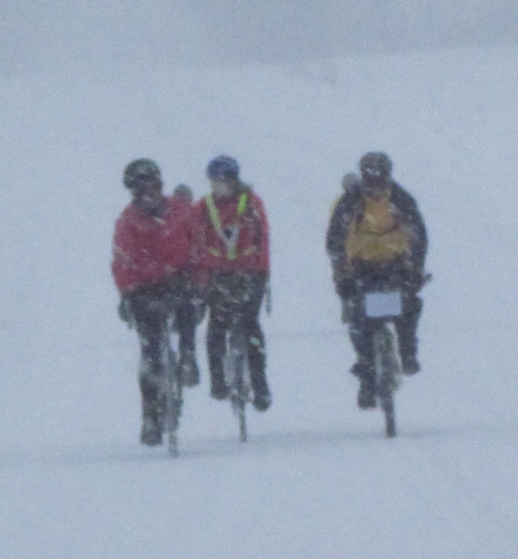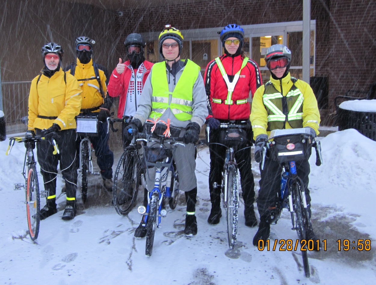 Randonneurs Ontario - Frosty 200 Pretty tough crew in ON. Text comes from the Randonneurs Ontario club forum. Ken Bonner forwarded the text and photos. Words from Glen Steen: [EF] "6 riders, (Dick Felton, Carey Chappelle, Terry Payne, David Pearson, Jakub Ner, Brian Brideau) left The Rec centre in Tillsonburg at 8:00 AM in a snow storm. The weather network said the snow would stop at 9:00 AM and it did, but started again at 9:15! Five riders finished in 12 Hours and 48 minutes."