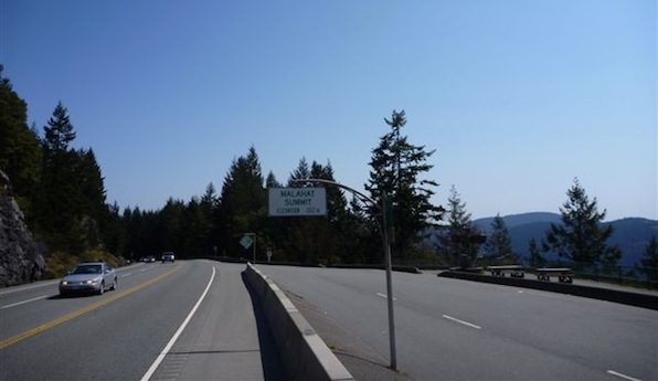 I never mind this part of the ride, as the shoulder is wide enough, and the climb is steady so a rhythm can be achieved. I past the site of the accident that dumped lots of fuel into the Goldstream...and was glad no one got hurt...but millions of salmon eggs died! The summit is a welcome site
