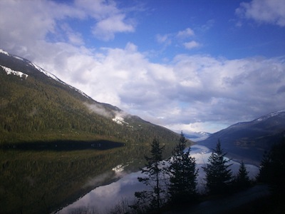 Dam to Dam to Dam 300 The Interior 300k brevet is set for Saturday May 14, 2011 and what a fascinating and challenging ride it ought to be as an in and out ride from Revelstoke past the Revelstoke dam and turning around at the Mica Dam some 150.4km later. The road - all paved, but some parts smoother than others -- parallels the reservoir between the two dams with wonder water views and stunning snow capped peaks of the Monashee mountain range in sight throughout the ride. And riders will have time to take in the views as the motor vehicle traffic appears particularly light. In the 300k pre-ride on Saturday (April 30) which took organizers Bob Goodison and Richard Blair some 15 hours and 25 minutes to complete they were passed by no more than 24 motor vehicles. One concern which ought to draw a rider's attention to the road is the rich variety of wild life encountered: lots of ospreys and bald-head eagles, herds of mule deer, two black bears, a moose which slowed us a tad as it crossed the road, and to top it all was a herd of some 25 mountain caribou who waited until we had a close sight of them before they scampered back into the forest. The challenge to the ride lies in the hills of which there are quite a number. And that should not surprise any randonneur as this is BC after all. The ride starts and finishes where Highway #23 North takes off from the Trans Canada Highway #1, that intersection being located about 500 metres east of the main turnoff into the city of Revelstoke. This is also a ride in which there is very little commercial activity, the only facility where food and drinks are obtainable is the Hydro cafeteria at Mica Creek, some 140 km into the ride. It sells sandwiches, fruit, soft drinks, and other miscellaneous items which they sell at a reasonable cost. Riders will have to pay for their purchases with Karen or Kerri at the office next to the cafeteria. Riders are best advised to carry some food with them. The controls at Wallis Road (75 and 225km) and Mica Dam (150km) will also have some food and water supplies available and the volunteers, Susan and Bob Goodison at Wallis Road and Richard Blair at Mica Dam will carry riders' bags to those points. Go to: Route