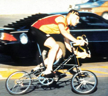 Elgar Vaivars wins the 1984 Toronto Criterium on an AM-7. Photo credit: Moulton web site.