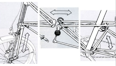 Here's how the AM-7 comes apart. Also note the internal spring located in the head tube, and the way the rubber-cone rear suspension works.