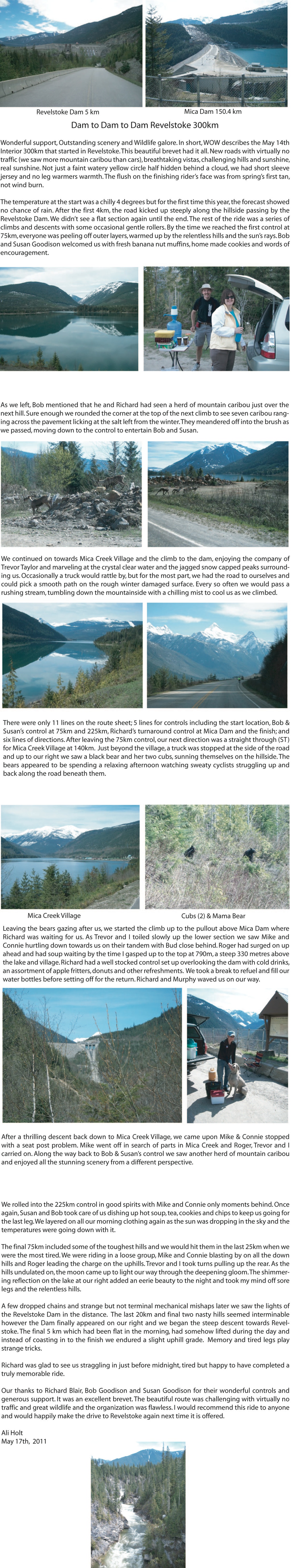 Dam to Dam to Dam Revelstoke 300km (Go to Interior 300 Photos to see Roger Holt's photos, below, a little larger, and also Bob Goodison's photos.) |