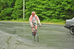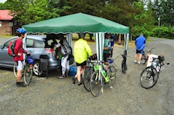 Namaimo Populaire - Organizer's Report After a hiatus of several years, the 2011 Nanaimo Populaire was held on 25 June 2011. Thirteen riders, twelve of whom completed the 100 km route and one who tackled the 50 km route, set off from The Buzz coffee shop shortly after 10.00. The weather was a touch cool with sunny and cloudy intervals. There was roughly 90 minutes of rain at the Nanaimo River control, between 12.00 and 13.30. The 100 km route took riders north to Nanoose, back through Nanaimo, out to Nanaimo River Road, through Cedar and back to Nanaimo. The 50 km route cut out the Nanoose and Cedar loops. Both routes were new, as I could not access Stephen Hinde's existing (and very good) routes due to computer issues. The riders seemed to enjoy the route, judging from the comments I received at the Nanaimo River control I manned with Patrick and I hope that several of them will be interested in our upcoming 200 km next weekend. Now to some anecdotes about the riders: Jeromy Lavigne flew from Ottawa just to attend this 100 km Populaire. Not content with riding a mere 100 km, he took a right (instead of a left) out of the Nanoose control and added a 17 km jaunt to Parksville to his ride! Chris and Clarence missed the early ferry from Horseshoe Bay. However, they caught the 08.30 boat, sprinted to the start and left 45 minutes after everyone else. By the manned control (at 54 km) they had overtaken several riders on the road! And now for a truly inspiring rider - Peter McAffery, who completed the 100 km ride. Peter looks like he is of retirement age. He is tall and lean and exudes a joy for life. He related to me, in typical dry English style, that two years ago in March he was knocked off his bike by a Telus truck in Cedar. The accident "broke my back, broke my pelvis, knocked a chunk off my femur and RUPTURED MY AORTA. The paramedics declared me dead and I spent eight weeks recovering in intensive care". Peter walks with limp and has trouble swinging his leg over his bike, but he looks smooth and powerful once underway. He completed the ride in under 5 hours! His tale, when related, left Patrick, Jenny, Cathy and I rather stunned. Wow!