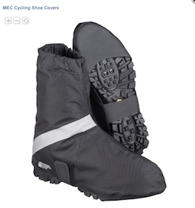 Shoe Covers - A Quick Evaluation Tracy Barill mused in a prior newsletter post about shoe covers - whether there were any that were easy to put on, kept your feet warm, and actually worked to keep out water. The short answer is no, but there is one shoe cover that comes close: the MEC Cycling Shoe Covers (Unisex), Product Number 5009-241 (http://www.mec.ca/AST/ShopMEC/Cycling/ShoeCovers/PRD~5009-241/mec-cycling-shoe-covers-unisex.jsp). Of the various shoe covers I have used over the past 40 years, I would rate these the highest for water-repellency, provided you wear them correctly. They don't rate as high overall as my personal favorite shoe covers - the mtb covers made by Adidas - which are superior in terms of fashion sense, snugness of fit, and comfort around the ankle, but the MEC's will keep your feet dryer for much longer. How to wear shoe covers: this is really important, as there is no shoe cover made that will keep your feet dry for longer than about 40 minutes. The most you can hope for is that your feet will at least be warm after a couple of hours, and this is just a product of how wet it is times how windproof the covers are. The MEC covers are made of a stiff, heavy waterproof nylon; the material exhibits good wind-resistance, but water can still get in thu the seams. Holes will also develop at the areas that bend (like the front of the ankle) after a couple of years. So your feet will get wet, but you can minimize this as follows: