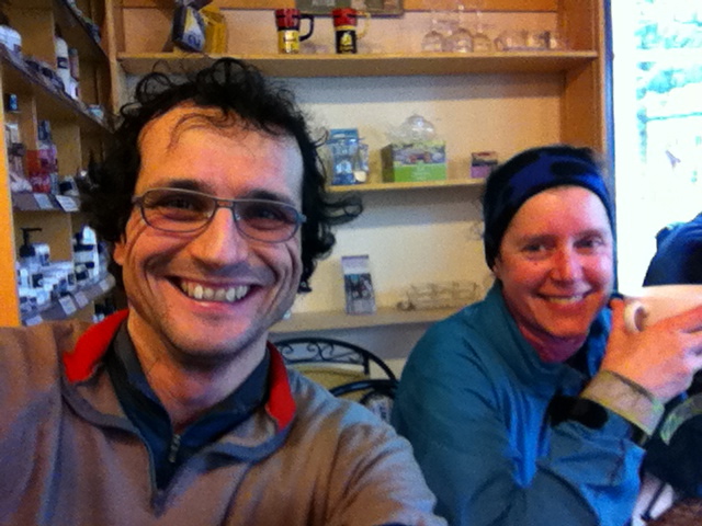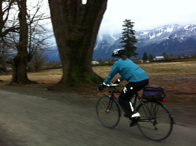 February Flatlander We had to get on Feb Permanent done on the last weekend in spite of the weather. It was a cold and extremely windy day. The wind was from the south meaning that with our East-West-East-West route we were going to battle cross winds all day. And battle we did. At about the 25 km point, as we entered the open Sumas Prairie, we debated whether we should turn around and go home. Our speed was dropping below 15 km/h at times and was never above 20. We decided to press on until Birchwood Dairy and reassess. Well once you reach the dairy one has too much invested in the ride to throw it all away, so we kept going. We continued battling the winds along Zero Ave anticipating the turn onto 272nd St and the tailwind north, but it was not to be as we also had a crosswind on that stretch. Nothing one can do. We made to our turn around in Fort Langley with perfect timing. As we were sipping our chai lattes and eating our pastries an intense hail storm let loose outside. Feeling rejuvenated by the sit down stop, we saddled up once more and pushed on. It was a fairy uneventful journey until we reached our easternmost point at Popkum. The southerly wind definitely had a western component to it as it was a struggle on the last 20 km back to Chilliwack. And to add insult to injury, a diesel pickup truck driver deliberately blew a large cloud of black exhaust into our lungs along Old Yale Road. Check out this link on YouTube: We finally made it home after 11h14m. In those conditions, I'm proud of that time. We were a little beat up, but still grinning from ear to ear. What a strange bunch we are.