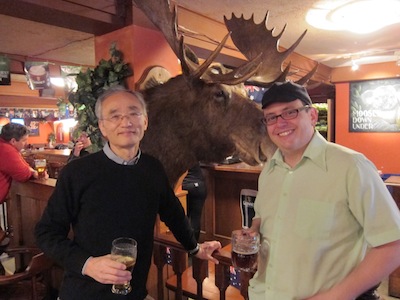 2012 Spring Social Good food, good beer, good talkin' at Mooses Down Under in Vancouver. Andy Reimer did a wonderful job as MC - there were awards, stats, skill testing questions and prizes. Award highlights included the presentation of three 40,000 km pins. (Bob Boonstra, Jeff Mudrakoff and Nigel Press), a record number of BC-12 pins for year-round randonneuring and the Roger Street Award presented this year to the very deserving Ryan Golbeck. Earlier in the day a few riders went for a casual ride to work up an appetite.