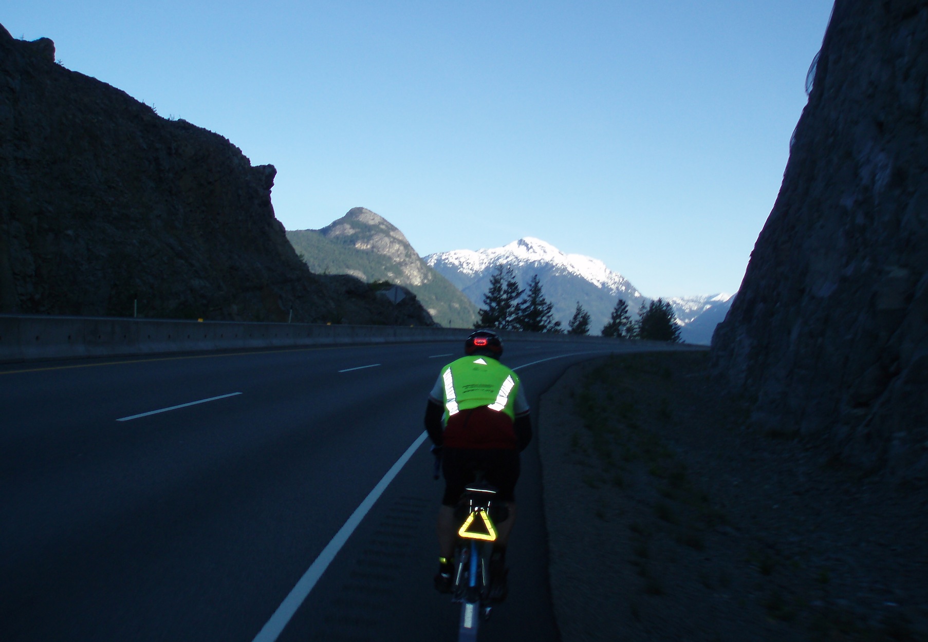 D'Arcy 400 Pre-ride & Route Info Go to: Route Ed and I left the Tim Hortons in North Vancouver at 6 AM. It warmed up before getting to Whistler, then it was shorts and jerseys for the rest of the day. Winds were moderate and generally unfavourable. Snow capped mountain panoramic views were spectacular. The bike path alongside Welsh Street in North Vancouver looks very inviting but there are big gnarly edges on the curbside that haven't been smoothed which could cause pinch flats or bouncing around as you try to navigate the bollards, so it's recommended to stay on the road both ways. Food at the Brackendale and Pemberton controls was fantastic. The warm scones at Bean Around the World were amazing, good place to stock up on fresh baked goods! Both Brackendale and Pemberton controls have bike shops next door. There is now a convenience store in D'Arcy open from 9 am to 10 pm. This will be the turn around control, and will also be staffed. The shoulder on #99 was as clean as it gets. It looks like it has been recently swept. Between Whistler and Pemberton the shoulder is terrible so use caution on descents. The Porteau Cove corner coming back is still sketchy, with a grate taking up the whole shoulder in one spot, but it has been swept. Watch for bears between Squamish and Whistler. We finished at 12:20 am, having riding a leisurely pace with several stops along the way, including buying some dried fish at a pow wow happening in D'Arcy and watching traditional First Nations dance and music. More pre-ride photos on: