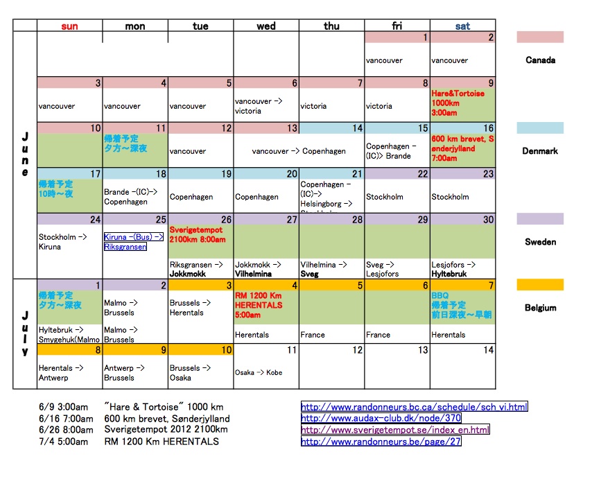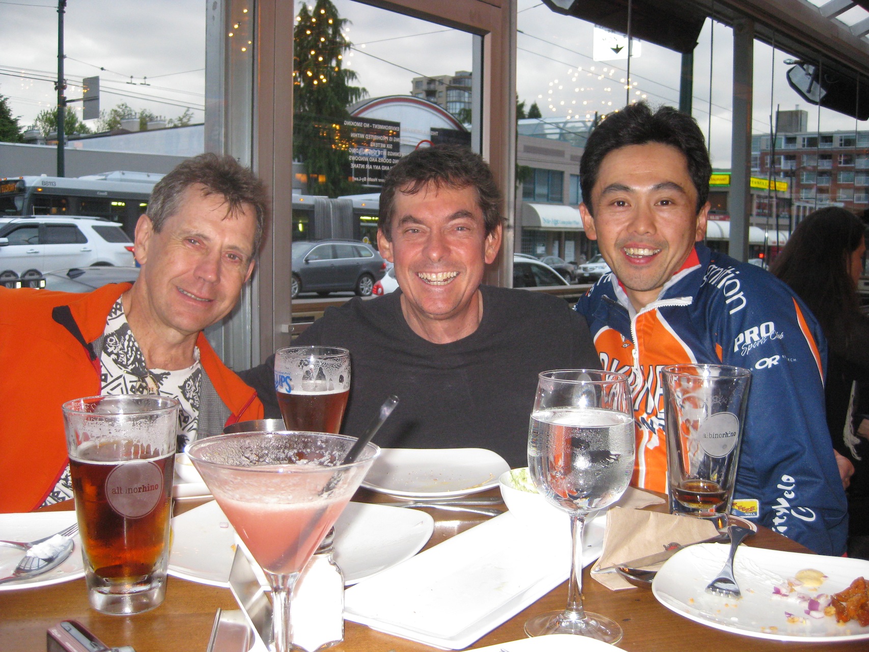 Ultimate Island Explorer 2000 km Reunion Keith Nichol, Eric Fergusson and Yutaka Moriwaki met up in Vancouver on June 5th. All three rode and completed Ken Bonner's "UIE" ultra-distance 2000 km brevet in June of 2009 on Vancouver Island. UIE 2000. (Ken completed the 2009 ride also as an organizer's preride.) Keith and Yutaka had completed the same ride in 2008. Yutaka is a well traveled Japanese ultra cyclist and great friend of BC Randonneurs. He will be riding the upcoming Gold River 1000 on the Island beginning Saturday. Yutaka will then move on to rides in Denmark, Sweden and Belgium. Here's his schedule - click: Joining the riders was Japanese artist Akari Kira, who is Yutaka's girlfriend.
