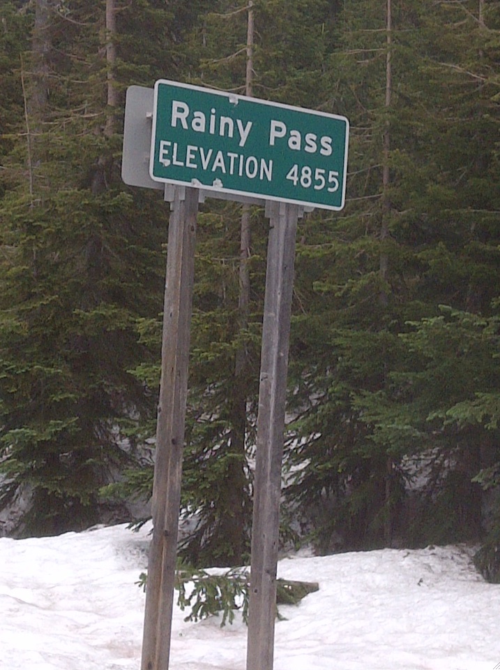 Ken Bonner Ken Bonner arrived in Monroe Tuesday morning around 02:00, June 26, 2012 Here is a report from Dewain Emrich, who drove support for him. Bravo Ken! Ken finished the 1200km ride at 2am this morning with details of the route at and comments from the organizer [on event blog] about the ongoing riders. He left Monroe Washington Saturday at 6am, rode the first day in several hours of freezing rain which luckily stopped as he was climbing the 1st big mountain pass (white pass) [link] that afternoon and then cycled up another mountain road into Mount Rainier National Park [link] in clear weather at night where the temperatures dropped to 1C. He got into the first hotel in Yakima at 530am Sunday took a 1 1/2hr nap then was on the road again. The temperatures on Sunday went up to 24C and the skies were mostly clear with beautiful puffy fair weather clouds occasionally providing a bit of shade. He had the pleasure of fighting strong head winds and enjoying them again as tail winds as he road back and forth across the high desert. He stopped for a 1/2 hr nap at about 1am on Monday morning in Malott [link] before starting a long climb up several mountain passes with temperatures going down to 3C and then stopped again at 7am in Mazama for another 1 1/2hr nap where he told me one of his pedals had seized up while climbing Loup Loup pass. While he was sleeping I went back to a bike shop in Winthrop where I ended up buying him new pedals as his bearing in the pedal had seized up. Then I had to take him back to the bike shop because he couldn't get clipped into the new pedals where we spent several hours trying to get a set of pedals that he could clip into easily. So he ended up leaving Mazama at noon in 14C with clear skies for the climb up Washington and Rainy Pass [link] in clear skies and temperatures that dropped to 3C in the high pass. Coming down out of the passes it started raining again but the temperatures came back up to around 15C as he left Marblemount for the final 160km of rolling hills. The rain stopped about an hour after leaving Marblemount and the temperatures remained a mild 10-14C during the night for the ride to the finish at 0203 Tuesday morning. From Mazama to the finish, his pace picked up considerably so I don't know how long he had been pedaling with the bad pedal but he hadn't noticed it until it started squealing while climbing Loup Loup pass so the pedal could have been slowing him down from the start. My part in his ride was making sure I got to the control points (labelled "Hors Category" on the route sheets) ahead of him and get his drink, food and change of clothes ready for him. I also checked into any hotels he had booked so he could get in eat and get a shower, change of clothes and a quick nap before getting on the road again. At the controls, I had his camel back inserts filled and ready to change, water bottle filled and ready, his clothing appropriate for the next section laid out and a change of helmets between the day and night riding. The night helmet had an extra big light on the top powered by a heavy battery he carried in his jersey. I also picked up hot chocolate or chocolate ice cream to give to him depending on the weather. He was never quite sure what he would want to eat at each control so as he would arrive, he would let me know what food he had been thinking about along the way and I would get it for him while he was drinking. The massive chocolate chip cookies seemed to be a favorite and he had some pre-made sandwiches, plastic containers with mixes of various types of food that no one in his right mind would eat at a sit down meal but were fairly quickly consumed during the stops of less than 20 minutes. I had a great time during the ride thanks to a chat with Mike Ellis before the ride where I learned about not following the riders circuitous route and just going to the next control which gave me lots of time for site seeing and napping in the van or at the hotels. The scenery was beautiful with photos to follow on facebook once we get back. Some of the most amazing scenery was the massive waterfall coming down off White pass, the high desert with the road covered in one section with what looked like some kind of massive grasshoppers squished on the road with others eating them (I have a movie of 3 grasshoppers tearing a dead one apart on the road). We thought they might have been locusts but they looked more like this grasshopper . The remnants of the massive floods caused by a giant mile high glacier that had had melted up hill from Dry Falls was outstanding. I did a hike up to the Wild Horse Monument and enjoyed the views in beautiful sunshine. I stopped several times along the route over Washington and rainy pass to take photos of the high snow banks alongside the road and chat with other cyclists that were touring Eastward across America loaded down with gear. I ended up filling the water bottles of one group at the top of Rainy pass that had nearly ran out of water while heading East over the passes. They asked me how far it was to the next water source and when I told them it was about 80km they almost panicked so I was happy to fill their bottles as I have been helped in the past by fellow travelers so it felt good to pass it on. The views coming down the pass near Diablo were amazing.