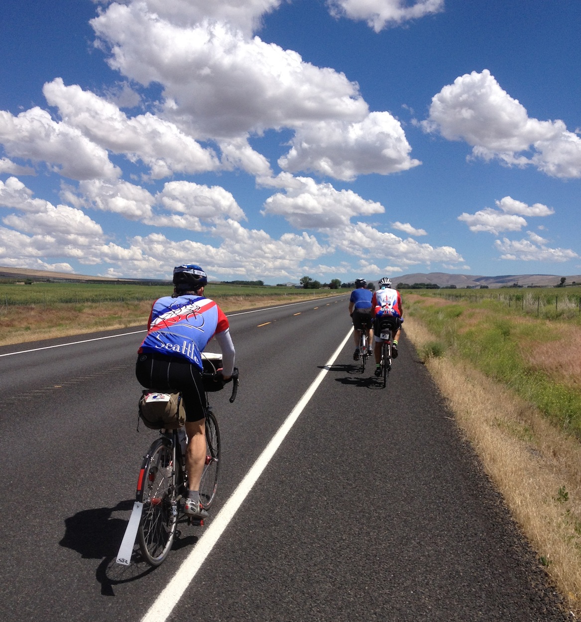 Cascade 1200 - Day 2 In four parts: Day 1 - Day 2 - Day 3 - Day 4 I copied Keith and Ross' wake up call of 4am but after doing a bit more prep than them before bed I was ready to go a few minutes earlier. Fortunately, I saw Bob Goodison hitting the road when I was packing up and I managed to latch on with him for the push back up towards the first control of the day at Mount Ranier National Park's Lodgepole Campground. I had what felt like a hangover headache and I cursed myself for not drinking enough water with my dinner last night. The tailwind of last night was ever present but since we were now headed west it was directly in our faces. I take a long time to loosen up on tour and today was no exception. I am extremely grateful that Bob was willing to hunker down and take some long pulls in that first half hour. We began catching the early birds and one of them was Mike. "Are you enjoying the nice cool breeze?" Mike asked as he joined our line. When the road headed into the national park it tipped up a bit but the trees offered some wind protection. We rode in silence along a roaring river with the sun peeking through every now and then until reaching the village of Cliffdell (41km) where Bob spotted a Rando bike parked for a coffee stop at the service station. We continued on wondering when we'd see Keith Fraser and Nigel Press coming back from the control/turnaround. Clouds turned to mist which morphed to rain by the time we saw Keith and Nigel--they looked really cold but seeing them meant the control was near. At Lodgepole Campground (72km) Mark from SIR took great care of us. Fresh brewed coffee to order, pastries, fruit and sandwiches if we wanted. I took some bananas and cookies to go and we were on our way back downhill to Nanches on a mostly smooth road with a tailwind. Even the the rain died down. I was having a great time ringing my bell to encourage everyone on their way up. One group of about seven guys that didn't need any encouragement was pacelining uphill(!) at a high tempo led by a rider in canary yellow Mavic Road shoes--you don't wear shoes like that unless you can back them up. I had a feeling we'd be seeing them again. We were flying though and I was beginning to imagine roasting those marshmallows after an early arrival at Quincy...until I flatted again. I expected Bob to continue with his tempo but he pulled off to wait for me. I decided enough was enough and changed the rear tire. Bob handed me his pump to get the new tire up to pressure faster than mine and then saved me a blowout by noticing the bead coming off the rim and calling out just before blastoff. I caught it, re-seated the tire and got back on the road. We caught up to Seattle John (of yesterday's short-lived 'Three John's' fame) just as we were passed by Yellow Shoes' paceline. Bob and I had been hopeful of catching a tow from them so I immediately latched on. The rider at the back of the group told me with a smirk that he, "...wasn't long for this world", shortly before pulling off. I shot the gap, fell in and began cruising along at 40+km/hr. There really is nothing like the sound and speed of a smoothly oiled paceline. The tires whirring on pavement...the wind rushing by as you turn over a bigger gear at minimal cost... I was lost in what Andrew Hartline calls, "a trance of speed", when I looked back and realized that Bob had been caught behind Seattle John and missed the move (it happened that fast). I felt like I could ride with this group for a while but Bob had been good the enough to wait for me so it would have been bad form to drop him in favour of Yellow Shoe's time trial team so I sat up and pulled off. When Bob rode up alongside he had been joined by the rider who'd briefly been ahead of me in the paceline, Gary Prince of Seattle Intnational Randonneurs (SIR). Gary has the kind of dry humour that makes the inevitable low points of any long ride way more tolerable so I became hopeful that this new group could stay together. Having completed the C1200 previously and he would also be an invaluable source of local knowledge and topography. When we reached the highway junction outside of Nanches (136km) the sun had once and for all gained the upper hand and it was time to stow our jackets, vests, shoe covers, and arm/knee warmers. While applying sunscreen for the first time on this brevet I heard Gary mention his, "Cat 5 Tattoo", and without looking up I began to wonder why someone would feel the need to commemorate their first season of racing with body art and what kind of design could do such a triviality justice. Then as I was putting my sunscreen away I saw the chainring mark on Gary's right calf. Right--I might need more blood sugar to the brain...Clif Bar, anyone? Buoyed by the tailwind and the sun we bobbed happily through cherry orchards eastward through Nanches and towards Yakima while Gary regaled us with told us about his hotel room (at what I believe was the only 'hotel' in Nanches), other places he'd stayed on PBP last year and his rando philosophy: good sleep is more important that getting a 'good' time or saving money. After sweating myself into a hangover in a darkened high school wrestling room full of snoring randonneurs last night, I could see his point. During one PBP story Gary mentioned 'The Charlie Miller Guys' and I figured this was my chance at solving the mystery. "Excuse me, I'm new at this...Who's Charlie Miller?" Wow. I couldn't even imagine doing that time on modern roads and equipment. I haven't quite grasped the idea of continuous riding on a brevet--I like to see where I'm riding in daylight, the time limits allow for rest and after all, isn't the ride supposed to be fun..? Anyone who can ride for more than 16 hours in one shot has my respect but if you do 1200km in 56 hours on dirt roads with a heavy turn of the century single-speed you are a legend. I run errands in Vancouver on a Flying Pigeon and the thought of riding it for more than ONE hour is too m
