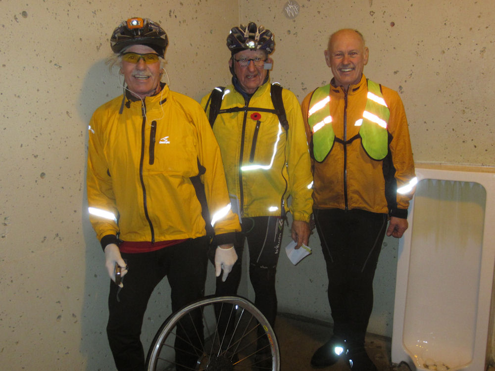 I would amend Tracy's comments by striking the term veteran trio, and replacing it with comedy trio. I had the pleasure of listening to their verbal jockeying while they worked on Bob's tire in the heated restroom at Iona Beach. Photo attached.