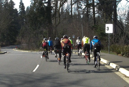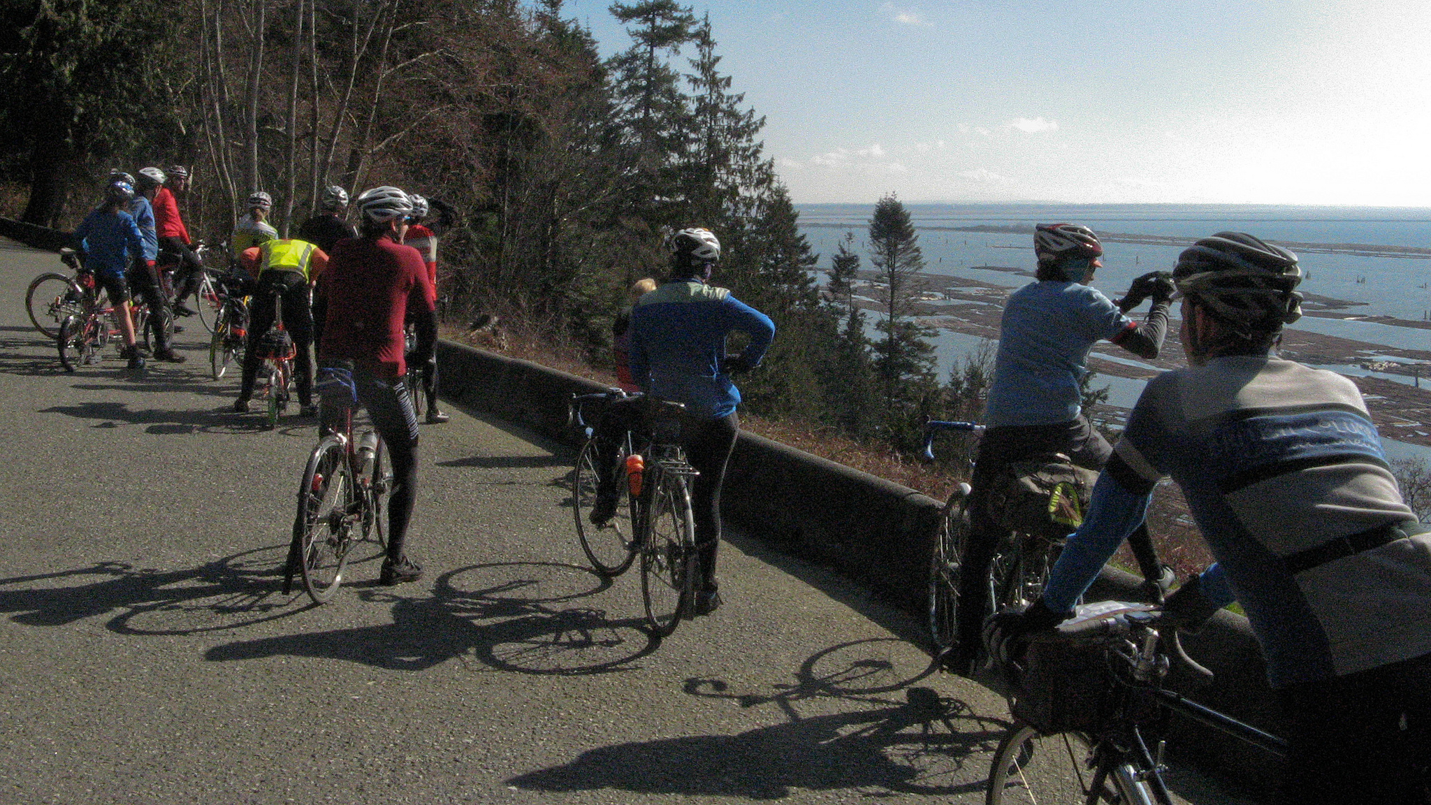 2013 Social Ride - Vancouver Bakeries and Cafés Blue skies made for a spectacular social ride. We could have cycled almost anywhere and done anything and the riders would have been happy. We took the "tourists in our own town" approach, following the Seaside bike route along English Bay, a trip around Stanley Park, followed by lunch at Musette Caffe. Located in the alley near Burrard and Drake, this café is filled with bicycle memorabilia. After lunch we followed the shoreline to UBC, dropped off some bike parts at the Bike Kitchen, and visited the blue whale skeleton in the Beaty Biodiversity Museum. It was really cool! Susan Allen took us on Old Marine Drive, a quiet stretch with a great lookout. From 41st and Camosun we followed Salish Trail for some easy "off-roading" back to Marine Dr hill, took in the beautiful views along Spanish Banks and finished with pastries from La Baguette & l'Échalote on Granville. It was wonderful day! Bakeries and/or Cafes recommended by the riders: