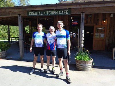Coast to Coast 300 Pre-ride Report More pre-ride photos. http://connect.garmin.com/activity/309252443 As the route organizer, you have the chance to choose the day of your pre-ride. Its good to choose a day that the weather looks good as it make the volunteers, pre-riding with you much happier...so I nominate Graham Fishlock to organize all Island Brevets and choose ALL pre-ride dates...Monday May 6th was a rare day on the coast and it was this day that we had the pleasure of pre-riding the Coast2Coast 300. Philip Lennox had a goal for this ride...he wanted to get it done before he turned 50! which meant we needed to be done before midnight. So with this goal in mind, we headed out with Graham, from the Best Western in Chemainus. This is the starting point for all Hell Week brevets. Graham will have specific routing instructions on the day of the event based on our pre-ride, but the route overall is in great shape and the mileage on the route sheet was exact at all turns. There are two info controls, so please remember to bring a pen on the ride. Philip and I will meet each rider in Port Renfrew at the Coastal Kitchen Cafe. Food is excellent at this spot. Speaking of food and water....I went through ~ 8 litres of water on this ride. Depending on the weather, this ride can be hot, but it can also throw the worst of "wet coast" weather at you...so be prepared. In Lake Cowichan, at the Country Grocer, there is a great deli/cafe where you can get fuelled for the ride over the to Renfrew. It is also a good location to get your fluids stocked up. There are no/zero/none! services between Lake Cowichan and Port Renfrew. Lake Cowichan also has a Tim Horton's and Subway if you prefer. This route has a few hills. See the Garmin profile from my GPS (Link attached). It is scenic and roads are relatively quiet. There are logging trucks so please do not cut corners on the road over to Port Renfrew. You may just encounter the grill of a MACK truck in your face! NEW JERSEY PRODUCT EVALUATION On this ride, both Philip and I wore the new club jersey. If you want a quality versatile stylish cycling jersey...then is a great choice. In the morning, I started with the zipper done up all the way as it was cool. As the day got hotter and hotter (we topped out at 31C!) the full zipper proved it worth as it got lower and lower! Fit was excellent. Philip is wearing a small, and I am wearing a large. Great job by Chris to source these for the club. Philip and I give them 4 thumbs up! Randopony is ready to ride so sign up now and see you in Port Renfrew