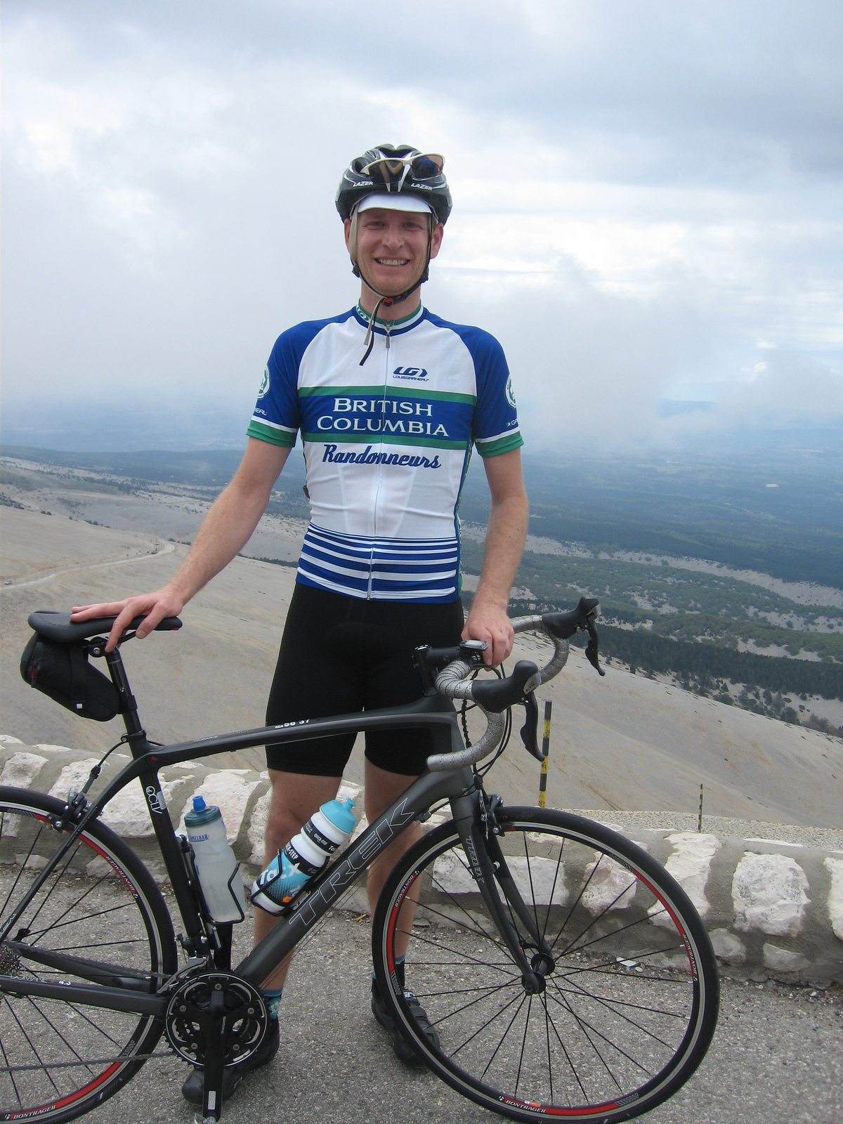 I asked Chris about the bike. He provided some more details about his day out [EF]: "Yeah I rented a Trek Domane in Bedoin from La Route du Ventoux. It was 40 euro for the day if anyone is interested. I considered doing the ascent from a couple different sides but went from the steepest side in Bedoin. Instead of doing multiple ascents I continued the ride out along the Gorges de la Nesque which was really stunning. The ride I did was 120km with 4300m of elevation gain. That's almost half way to the 10,000m required for the Super 600 permanent in only 120km! We were racking our brains to find 10,000m in 600km here in BC, I guess it's easier to find in France." Here is link to the GPS track of the ride: http://www.strava.com/activities/53306545 June 16, 2013