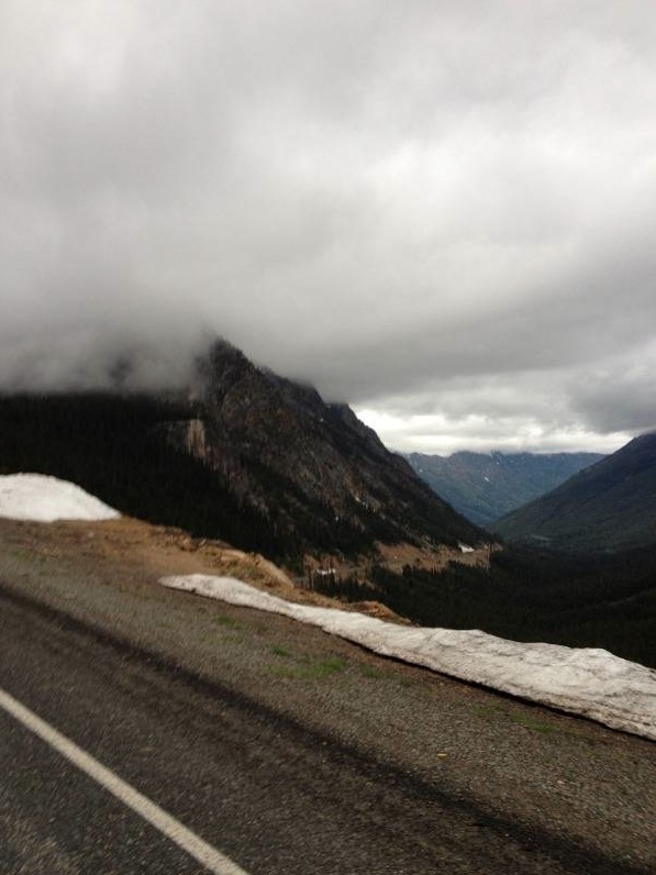 Cascade 1200 - Day 4 In four parts: Day 1 - Day 2 - Day 3 - Day 4 Apparently experience means you are up and moving before the wake up call; Keith and Nigel are up and almost packed before I figure out where I am. I had my stuff out and ready to go so I quickly dress and am crunching behind them on a gravel road to the dining hall on the other side of the property before I know it. Breakfast is a large group affair but the experienced efficiency of my ride partners from the previous day (which I am attempting to emulate) has us out on the road before most (if not all) riders who overnighted in Mazama. Today I have my computer on (with satellites acquired!) when rubber hits the road. The familiar brisk pace kicks in as soon the the road tilts up. Nigel takes the first pull and we are cruising up the road for a good 8km before he passes the torch to Keith. When it falls to me a couple of kilometers later it has become clear that it is,"...when to fold'em." I hold a good pace for as long as I can, swing wide and say,"See you at the finish boys!" As their tail lights bob off into the distance I begin to do the math on the distance remaining in the ride and the kind of pace I can maintain once the hill climbing is over--even though I have no idea of the terrain and weather on the other side. I figure I can maintain 20km/hr the rest of the way--even after 3 days of 300km rides getting me in around 5pm. Sounds great...now I just gotta get over this little hill called Washington Pass! It wasn't really too steep but it was 29km long and quite beautiful. The switchbacks at the end kicked it up a notch but it was cool to turn around and look back down the road we'd just climbed. I could see a gentleman I'd passed 20 minutes ago as a yellow speck below me--we were getting pretty high now!