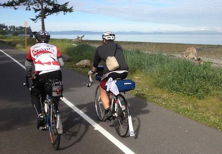 Oregon Coast 1000 - Day 1 In four parts: Day 1 - Day 2 - Day 3 - Epilogue If it's dark, you are out of breath and you're sweating through your carefully chosen outfit as a strobe light flashes, you are probably at a rave...or late for the start of a rando ride. As I charged through the back roads of the False Creek Flats on the way to the Central Station near Science World I wondered if I'd make it to the start before the group pulled out. Given that the organizer, Bob Koen was riding, I had left myself with a pretty slim margin. I had soaked up a lot of experience from Eric Fergusson on our Flèche ride earlier in the Spring and one of the things he made clear was that sleep before the ride mattered as much or more than sleep on a multi-day ride. I took his advice the night before the night before the Flèche and it allowed me to ride through the night on less than 10 minutes sleep. The same practice had allowed me to ride through on the Merritt Loop 600 and get a great time despite three flats. While I had slept well Thursday night, I had gotten greedy and pushed the limits of my ability to get on the road quickly by taking an extra 15 minutes of sleep this morning and I was now paying for it. As I rounded the corner on Station Street at 4:58 I was relieved to see a landing strip's worth of rear flashers in the park but when I pulled up to register, I realized I'd forgotten to get cash last night. Once again, Eric saved me by pulling out an American $20 bill and saying I could get him back later. I was confident this would work itself out since we were rooming together at the overnight controls. We were underway almost immediately and since I was already warmed up I found myself pushing the pace and leading the group all the way to the Canada Line Bridge. Once we had cleared the bumpy construction site east of the bridge, I pulled out of the group and soft pedalled while I ate the scrambled eggs I'd made at 4:45 and carried until I had a chance--on Vulcan Way--to eat them. Having cleaned out my Gladware I put in a little push and re-joined Eric, Will Danicek and Dave King in a bit of a pace line along River Road. I am still a bit of a noob when it comes to South of the Fraser route finding and I appreciated having Will to direct me through the maze of sidewalks, gravel paths and bike routes on to the Alex Fraser Bridge. South of the bridge was more route finding and some steep climbs but it did keep us off the beaten path and I always like to learn of new roads I would never have found without the route sheet. When we came out onto Colebrook Road I began to settle into the reality of the ride and realize that I didn't have to pedal at the limit as we still had another 960km to go. The ride up King George was peaceful at 7am but I did pull off at a Petro Canada to unload some Canadian change so I would not have to carry it 900km. As I sped to catch Will before the Peace Arch I saw Sigi ringing a cow bell at the roundabout at the base of King George--nice! Once across the border, I rode with Will and Dave King for a while and the stretch to the Birch Bay Control was really calm and enjoyable. After riding past the BP plant the group spread out a bit on the rolling terrain until Dave caught up with me at the lights in Ferndale. We had crossed paths with a local group ride at Birch Bay and when we saw them again outside of Bellingham, Dave dropped off my wheel. Since I had eaten my breakfast on the ride, I decided to get onto Chuckanut early while it was still cool and grab a sandwich in Edison. There was a triathlon race going the opposite direction and it was fascinating looking at the different outfits and body shapes in the race. I wonder what they thought about the collection You know you live a charmed life when you want to rush through Chuckanut because you've ridden it 'too many times' in the last two years but I was looking forward to getting off Whidbey Island ASAP and onto new (to me) roads on the Olympic Peninsula. In Edison I ordered a sandwich to go--putting on sunscreen while they made it--and was rolling out in less than 15minutes. I probably should have ordered the smaller sandwich (the last time I got the large the tandem stoker ate 1/3) but I managed to get over the distended abdomen before the bridge to Anacortes. It was cool to find a third route around town and after crossing over Hwy 20 I waved to a guy on his deck who promptly invited me in for burgers. Having just begun to After re-filling my bottles at the rest stop just off the bridge I saw that I had 1.5 hours to get to the 2pm ferry 30km away so I got into my Fabien Cancellra fake aerobars breakaway stance and got after it. Despite hitting every single one of the 327 traffic lights in Oak Harbour in the heat of the day, I managed to get to the ticket booth with 5 minutes to spare. On the ferry, there was actually a bike ramp on a set of stairs... that lead to a bike room...with a proper rack that I helmet-locked my bike to. After using the facilities and refilling my The hot climb out of the ferry terminal and over the rise to US 101was crowded but most of the traffic headed to Bremerton--suckers!--and I had the road to myself for long stretches the rest of the day. This part of Hwy 101 had interesting concrete arched bridges and ran against the west bank of the canal so it was nice to ride in the shade for most of the 78km. The sky was that deep blue that I stopped for 'dinner' at an IGA and had a quick conversation out front with a SIR guy who asked if I was on a 400 or 600km ride. Between hurried bites of a Corn Dog and desperate gulps at a Starbucks branded beverage I explained that it was a 1000km to Eugene and he wished me luck. I continued on in hopes of reaching Montesano in the daylight. There was one little cottage community on a lake with views of the mountains but most of the final fifth of the ride after the canal was through clear cut forest lots. The two exceptions on the landscape were sobering 