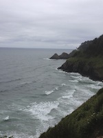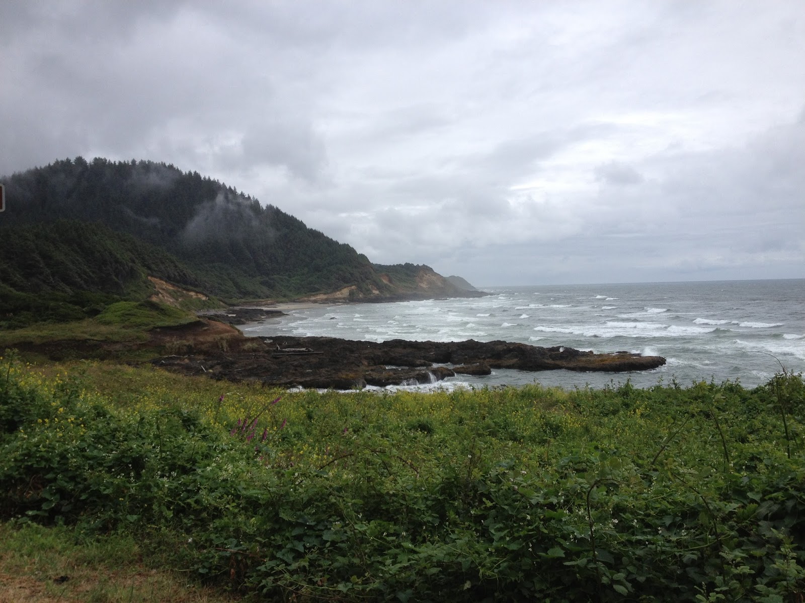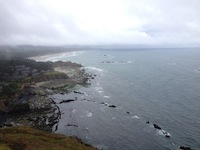 Oregon Coast 1000 - Day 3 In four parts: Day 1 - Day 2 - Day 3 - Epilogue For the second day in a row I awoke minutes before the alarm. Most of me felt like I'd only experienced an hour of sleep but as I dressed in the dark, my mind did its best to reassure the rest of my body that I had been asleep for at least four hours before Eric came in. There was a fringe of light around the margins of the closed curtains as so I was hopeful that the wall of wind and rain that I walked through on my way from Subway the previous night had dissipated. Outside it was fairly warm but less than three blocks from the hotel I was pulling over in the face of heavy horizontal rain drops to get out the rain gear. Normally these intermittent downpours would have me truly frustrated but I think randonneuring (or possibly age) has changed my response to in-ride challenges. Yes, rain on a ride is what I like to call,'sub-optimal,' but I've got a pretty decent bike, some excellent equipment and I AM on the Oregon Coast instead of at work, right? Lincoln City's forgettable strip of motels, antique shops and clothing stores for female retirees lingered for about ten minutes' ride and then I was looking for the recommended breakfast stop in Depoe Bay. I never did find the Sunset Grill but I did run into Roy again at the last gas stop. He said everybody else, including The Nichol's, had stopped for the night in Pacific City. In the absence of breakfast, I poured some of the service station's hot, vaguely coffee-flavoured liquid into my mug, added some non-dairy creamer and hit the road. I knew there were some good places in Newport that I'd cruised by on my last time through and I would look ahead to them for a meal. The worst of the morning's weather actually came at the height of the Otter Crest Loop--a nice detour that the Oregon Coast Bicycle Route takes onto the original Pacific Coast Highway's narrow grade. It was a sheltered, lower altitude and blissfully car-free escape from the clamour of cars splashing by at 100km/hr while you battled a considerable headwind. As I rolled peacefully out to the view point at a place James Cook had named Cape Foul Weather I was almost knocked off my feet by a gust of wind. On my arrival into Newport I looked like a drowned rat. At least I didn't have to worry about someone stealing my bike--only another randonneur would choose to ride in this type of downpour. I think Newport must have a large time-share/recreational property demographic or at the very least that segment of the population seemed to favour Café Stephanie. It was a stark contrast to hear the conversations of retired doctors and businessmen after eavesdropping on dairy farmers in Tillamook and to experience on-the-ball, trip-over-one's-self good service a day's ride after the Raymond drive-thru. I went with the big-city vibe and had the breakfast wrap and a latté. It was very satisfying to get fresh vegetables and a fruit salad in the deal and the coffee was outstanding. After savouring it to the last drop I was once again ready to cut a swath through the wind and rain. Riding around the point to the Newport bridge is very scenic in good weather and was still enjoyable on this day as our route had taken us off Hwy 101 to get through town. There was even Yesterday's foul weather had shorted out the charger for my Garmin GPS unit (I thought it had been in a ziplock. It hadn't) so I was flying blind. I knew the way to (and through) Newport from a previous tour but I was now looking for a new side road that wasn't part of the official signed Oregon Coast Bike Route. With all the riding I'd done in the US in the past year, I was pretty confident I'd be ok because most state and county roads have mileposts. Given that the route sheet was in metric and mileposts were in...uh, miles, my only concern was making approximate conversions on the roll while sleep deprived (That said, I did have some Lonely Planet maps in miles for backup). When I found Beaver Creek Road almost immediately after the milepost that I had calculated would be the landmark my nerves let up a bit I began to enjoy the ride again. Of course, needing to pull over and remove my rain gear didn't hurt either! I reached the Beaver Creek information control about an hour ahead of closing time and I worried for the guys who had started the day in Pacific City. Would they be able to make it? Eric had expressed similar concern last night/this morning... As I sped back out to the highway I enjoyed a scone that the dude at Café Stephanie had added at no extra charge, "..for the road", and I began to feel the flow. This section of the Pacific Highway The road rocked and rolled in and out of coves and up and down small cliff's. The surface had recently been redone (although the shoulder was a bit of a mess) and the stunted trees along theedge of the road formed a hedge that kept this cyclist out of the south wind. In Waldport I saw a bike co-op at a former gas station and took the opportunity to seat my tire properly after yesterday's flat repair (I like to follow a tip from Chris Cullum and pump it up to 100psi before lowering it to riding pressure). As I rode up the rise out of town, I noticed creaking in the chain and sped back down for some chain lube.