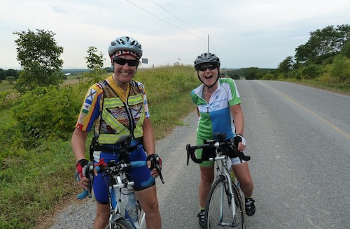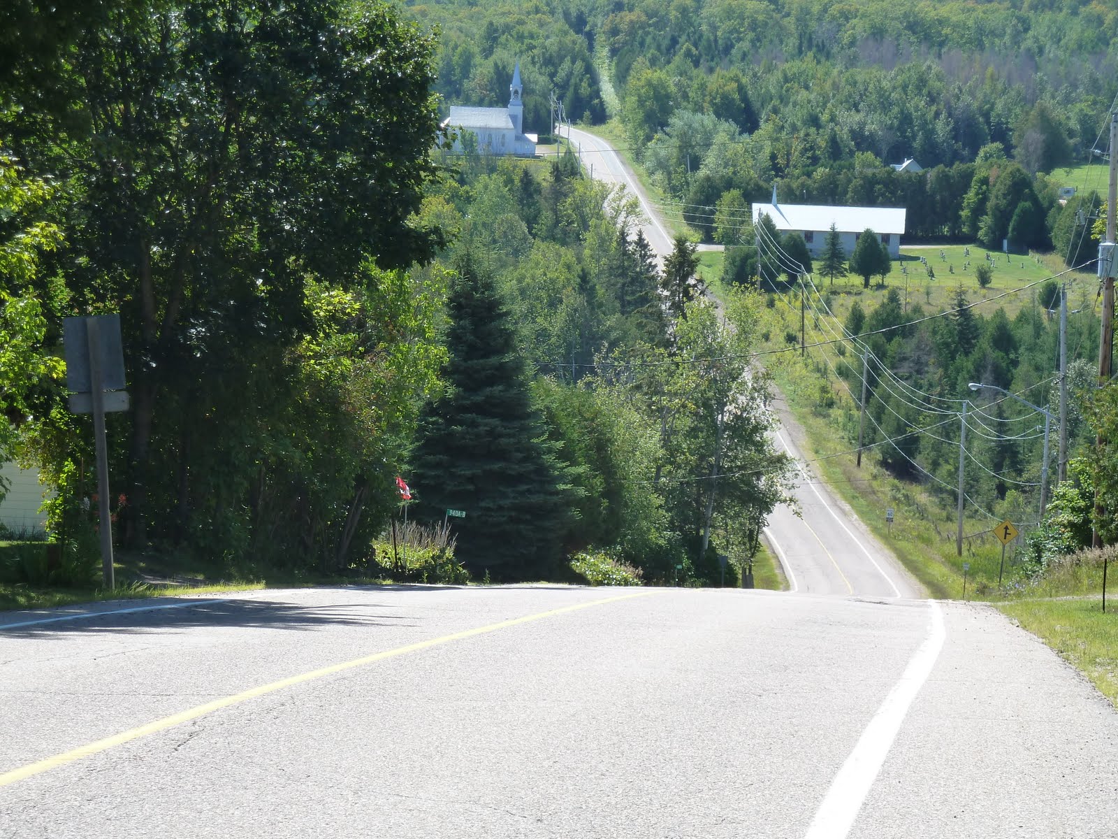 Granite Anvil 2013 Day 1 The Granite Anvil 1200 km brevet is all about exploring rural Ontario. It starts on the eastern outskirts of the big cities and manages to circle all the way around the Toronto area without ever getting into any densely populated areas. All of the first afternoon is spent riding through the farming country in the western part of southern Ontario. This area represents what I used to think most of Ontario looked like. Huge expanses of corn fields and not much else. Flat as a pancake. Except that the flatness is deceptive, it isn't really flat in the area that we rode through. There were lots of shallow rollers that gradually gained altitude. By my altimeter the high point of the ride was in a corn field north of Grand Valley. In the evening we did a long descent out of the corn into the Beaver Valley and then a long climb out of there and got a fine view of Georgian Bay before we descended past the Blue Mountain ski area. Then we went through Wasaga Beach and finished the day at Midland. The day started well enough for me. After the usual sprint start (that I no longer even bother to attempt to hang onto) I settled in with a group that was going at a brisk but manageable pace. I didn't know any of the riders in the group at this point. The organizers had us put frame plates I finally caught up with the group at the second control after chasing for 200 km through the brutal headwind. I had been quite worried before the ride that my fitness wasn't up to the task of a 1200 due to not enough riding in the previous months. My confidence improved a lot after my performance that afternoon. We all left the second control together and spent the rest of the evening riding through the ski area country and then through the resort beaches area and arrived at the overnight control in Midland at about 11:30 pm. This stage was 398 km and gained about 2800 meters of elevation. The control was in a motel. There was dinner and breakfast food laid out by the volunteers. Due to some scheduling quirk I ended up with a room with two queen beds all to myself and slept very well. Many randonneurs think that the success of an ultra brevet is measured by your finishing time. The fewer hours you spend out there, the better you are as a rider. Not me. I measure success by how many hours of sleep I get while still finishing within the 90 hour limit. This night I was able to get 3 1/2 hours of sleep. 4 1/2 would have been possible while still leaving an hour of margin before the control closed. But the organizers had recommended 2 hours of margin and the consensus of the group was to go with that. After chasing for most of the day on the first day I was quite happy to forgo the extra hour of sleep in order to have some companions for the next day. Day 2 We left Midland at 4:15 am and rolled along through the early morning to a staffed control at Big Chute. Hot coffee, hot soup, and hot chocolate got us moving along nicely through the awakening day to the next control at Houseys Rapids. Here there was a 'restaurant' serving breakfast. It was It got dark at about that point and so we rode on through Wilberforce (my favorite place name of the ride) and on into Bancroft under a nearly full moon. It was magic. We arrived at about 10:30 and had a nice meal before turning in for a glorious 4 1/2 hours of sleep. Or so I thought. While having some dinner at the control before turning in Florida Don and Fixie Dave arrived and Don immediately asked Vaughn, the control captain "where am I". This sent Vaughn into spasms of hysteria. Don wasn't close to being out of it, although it may have seemed that way to Vaughn. It's just that northern Ontario is a long way from Miami Beach both in a geographical sense and in a perceptual sense. Don was clearly stoked to be there. My 4 1/2 hours of sleep turned into 4 1/2 hours of wakeful rest. I wound up with a cot while my roommate slept in a comfortable bed and snored like a chain saw. Such are the joys of randonneuring. Day 3 Kathy and I left Bancroft at about 4:30 am and rode out of town to the north, the way we had come in. We soon encountered the last poor soul still going the other way toward Bancroft. We felt awfully sorry for him as he was looking at maybe 1 hour of time in Bancroft before the control closed and he had to be on his way again into what was promised to be the hardest day of the ride. We later learned that not only did he make it out of Bancroft but he finished the ride as well. Chapeau to him. It was extremely cold for August. I registered 3 degrees, Kathy's thermometer registered only 1 degree. The saving grace was the series of very steep hills that we encountered in this stretch. Going up was a lot more pleasant than going down. Eventually the day lightened enough to After breakfast we stopped by the control which was at the local community centre. A couple of the local politicians were out there welcoming us to their humble community and handing out pins and such, and claiming that it usually wasn't this cold in August. Never trust a politician. Back on Siberia road I was noticing a certain plant growing beside the road that I had only ever seen before in the Yukon. The rest of the day featured several more noteworthy climbs, never all that long but always plenty steep. Then there was the 31 km of loose gravel on Buckshot Lake road. Buckshot became a A couple of more controls passed by, including a lovely stop at the beach by Sharbot Lake. Then it was on into the gathering darkness on mostly level and nicely surfaced roads for the final 80 km to the final overnight stop at Napanee, where we arrived at 11:30 pm. Once again we could afford 4 1/2 hours of sleep and made good use of the time. Day 4 We left the control at 5 am and immediately went to a restaurant about 3 blocks away where we whiled away another 45 minutes having a nice breakfast. We were on familiar terrain now and knew that the ride was in the bag (barring any substantial bad luc