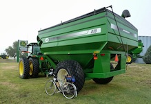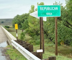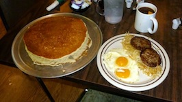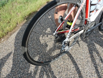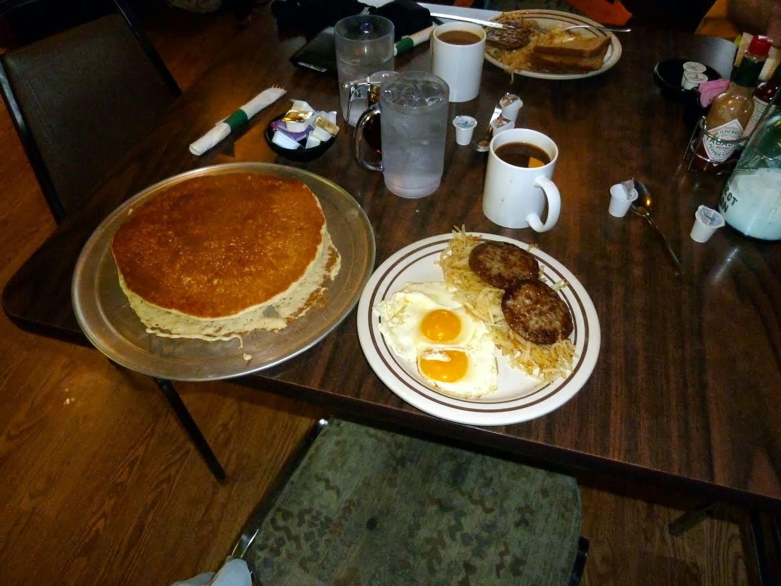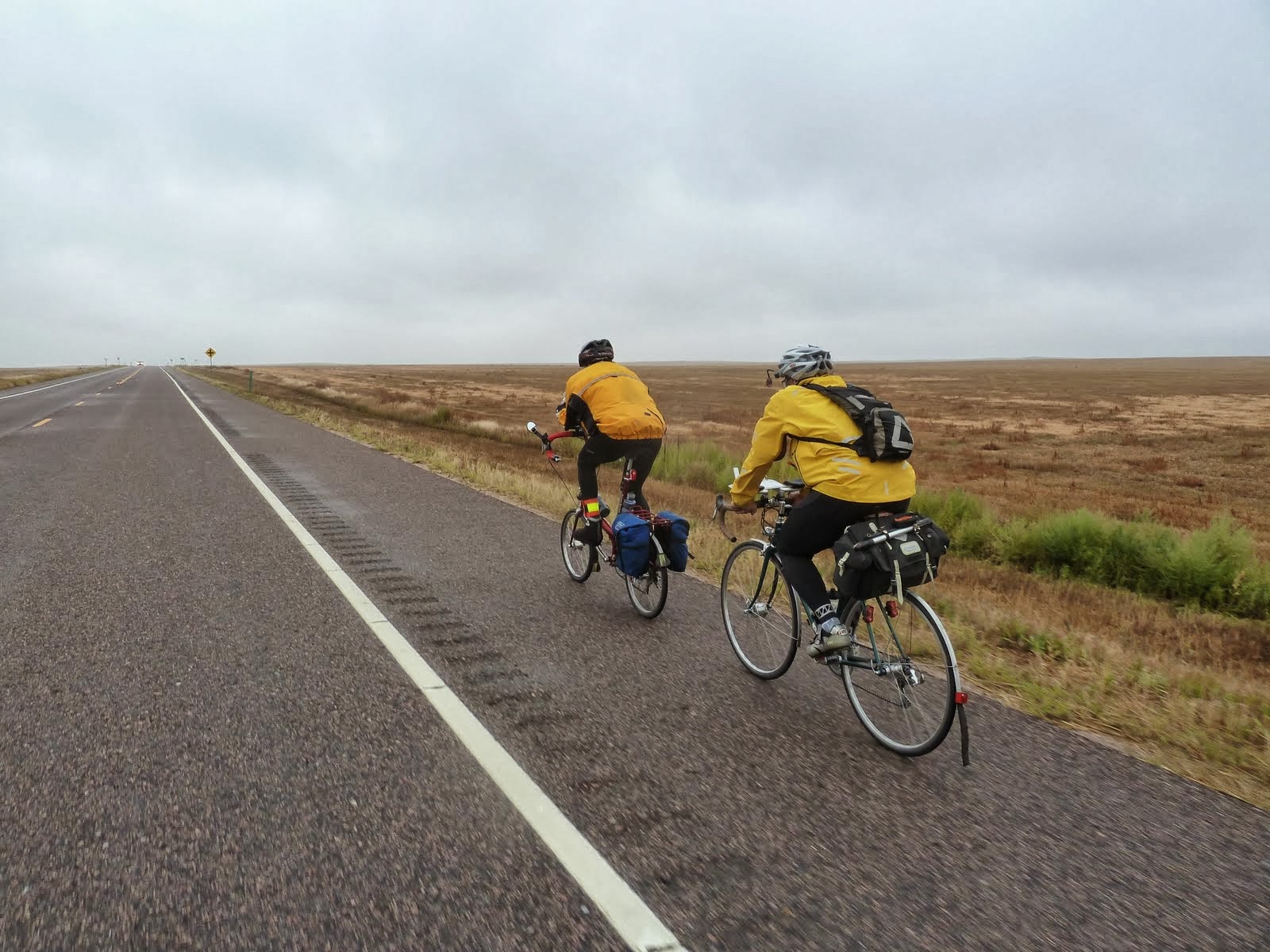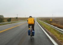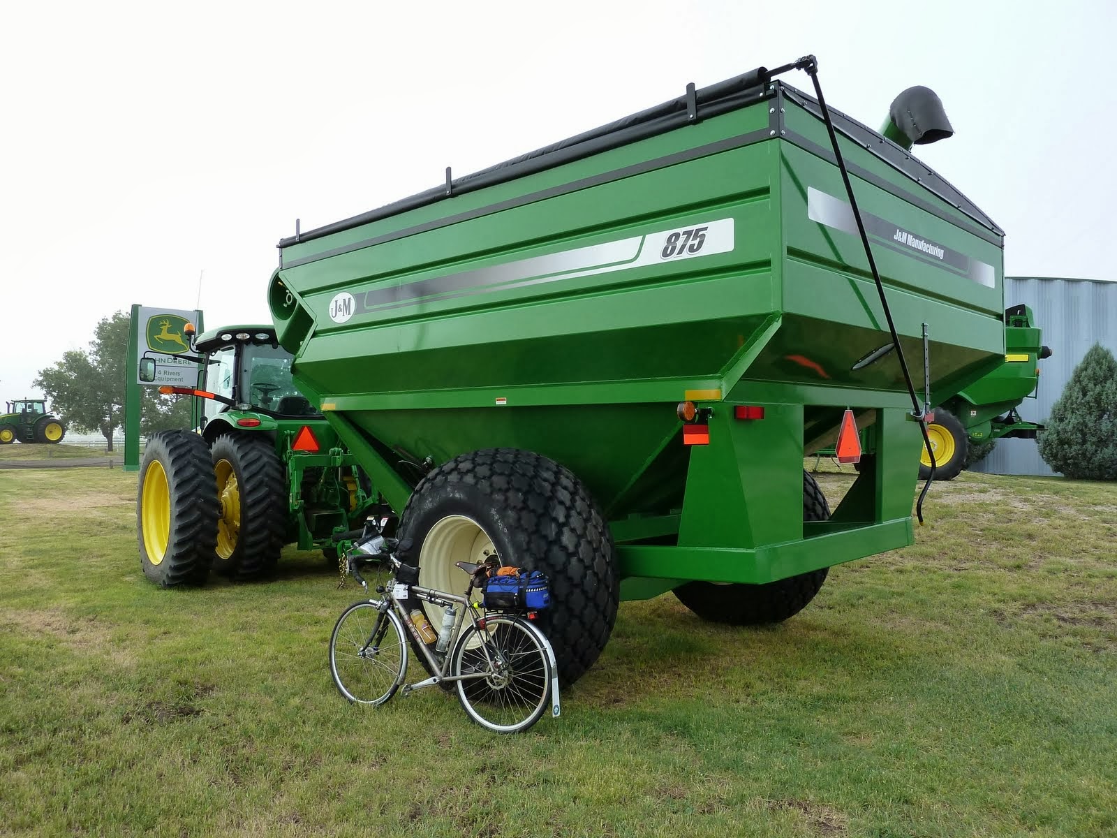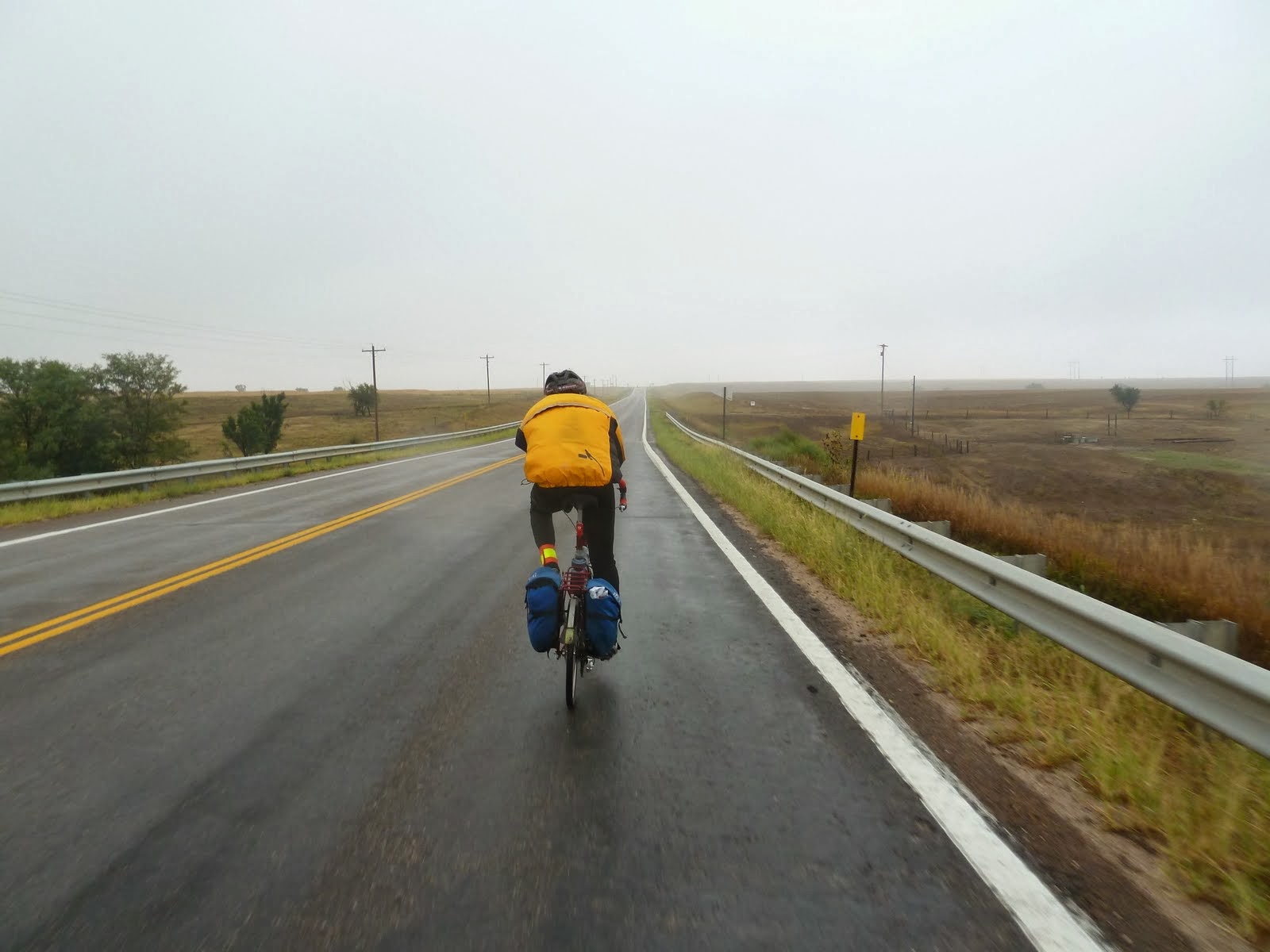 Too Stupid To Quit This ride seemed like it would be easy. Its downhill with a tailwind for the first half, by which time most riders will have so much time in the bank that they can walk back if necessary. There is substantially less climbing than on most 1200s, and the maximum grade is only seven percent. The route sheet fits on one page. Over 900 km of the ride is conducted on a single road. Wrong Way Corrigan couldn't get lost out there. Ha! The ride started well. 23 riders left Louisville, Colorado at 3 am in a light rain. After an hour or two the rain stopped and the roads dried out. Life was easy. The first stop was at Byers where we got our cards signed and then found a great little breakfast restaurant. Being hungry and knowing that the next stretch was long and without services I ordered the big breakfast, called the "oinkers delight" or some such. Whereupon the waitress told me "no, you can't have that". She told me to order the regular breakfast that only had one pancake, so being an agreeable sort I complied. You have to go along to get along. She was right. The pancake was too big for a standard plate Meanwhile, all sorts of hell was breaking out behind us. The rest of the day featured occasional showers and one heavy downpour. There were some rollers and some long stretches of very flat road that gradually lost altitude as we made our way toward Kansas. Manfred got three flats and Ron and I each got one. The roads were generally good and the shoulder was generally bad and was littered with goats head thorns and little bits of wire from exploded truck tires. There was a bewildering array of ingeniously crafted rumble strips designed (or more accurately, with no discernible design) in such a way that made riding on the shoulder side of the rumble strips a really bad idea in most places (the picture below being the exception). We were riding on US route 36, a coast to coast US highway that is maintained in a unique fashion by each county that it passes through. In one county the rumble strips were the entire width of the shoulder. In some counties there was a continuous rumble strip with no break whatsoever. In other counties there were breaks, but the breaks were not long enough to allow a bike to weave across without hitting the rumbles. Bridges generally did not have shoulders and the rumble strips always went right up to the bridge necessitating a weave across the rumbles. The traffic was generally very light, so we cycled in the road as much as possible. We spent the day drifting slowly backwards through the peloton, fixing flats and generally riding at a 'mature' pace, until we pulled into the penultimate control of the day at St. Francis, We were OK, but there was still one group behind us consisting of George, John, and Christine who were not so well off. When they got to St. Francis there was nothing open and they were out of food and water. There was still 68 km to go to get to the overnight control at Atwood. So they phoned ahead and Charlie Henderson hopped in his truck and drove out to meet them with pizza and water. That's a tremendous level of support. Chapeau to Charlie. We eventually got to Atwood at 12:30 am and had a nice chat with the volunteers. Dinner and breakfast were provided for us here. We got a shower and three hours of sleep and then left with about an hour to go on the clock. Ron had left earlier so it was just Manfred and I heading out into the darkness. Fortunately, Manfred waited until dawn before getting his first flat of the day. Shortly After a couple more flats on Manfred's bike we eventually reached the turnaround point at Kensington KS in the late afternoon. We were still only an hour up on the clock, having gained exactly no time in 12 hours of riding. Manfred's 3 flats for the day plus the pedal problems (which kept him from riding out of the saddle) conspired to slow us down considerably. In fact, the 39 hours that it took us to cover the first 600 km represents my second slowest 600 km ever. I was pretty worried about the situation and desperately hoped that we would speed up on the return to Atwood. Better luck combined with the slowing of the brevet clock after the 600 km mark might just allow us to get some sleep that night. My anxiety caused me to floor it a bit on the way back to the next control at Phillipsburg. I waited for Manfred to catch up at the half way point of that stretch, and then I took off again. A while later Manfred pulled up beside me, but now in the cab of a pickup truck. He had had his seventh flat of the ride. He had no more spare tubes and was unable to find and fix the hole. Since he was riding a Bike Friday with small wheels he wasn't able to borrow tubes from anyone else. His ride was over. The fellow driving the pickup told Manfred that last year he would have gone by and left him there. But this year he had gotten religion and God had told him to stop and save Manfred. Praise the Lord! We met up at Phillipsburg where Manfred made yet another call to Charlie, this time for a rescue. Charlie went way above and beyond by driving 300 km round trip from Atwood to Phillipsburg to retrieve Manfred. I managed to hook up with California George at this point for the return trip to Atwood. What George was doing hanging around at the rear of the pack this late in the game remains a mystery to me. Just being sociable I guess as he is clearly capable of much greater speed. I soon found this out as I chased like a madman all the way to Norton to keep him in sight. We got there in time to catch the Dairy Queen still open for business. Fortified with bits of dead cow and a milk shake I then commenced another desperate chase down the road to Oberlin. At least the pace was picking up. Be careful what you wish for! In Oberlin we had a humorous interlude with the manager of the all night convenience store who was outside chain smoking with her pals when we rode up. She had some interesting tattoos and body piercings, plus a