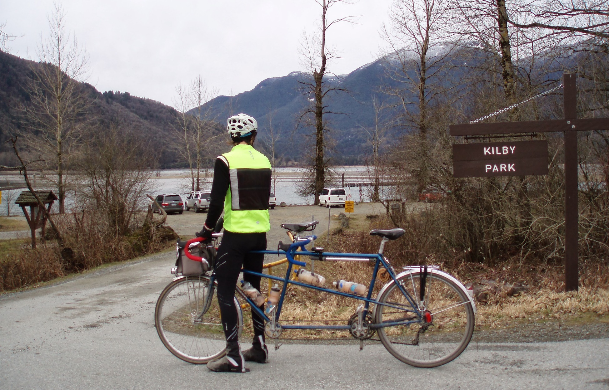 Tailwind Elf Stomper Cheryl Lynch & Nigel Press It was pretty good. How often do you get a smoking tailwind (well a lot of cross, ENE) all the way back? A bit of work getting there (Kilby) with headwind all the way, building through the Here is the gps route: Not sure if you can see the 35+ kph, back from Kilby to Mission! Almost harder on my quads than the way out. Funny how you push harder with a tailwind. You can sort of see the fresh snow on the hill tops but there wasn't enough contrast for the photo of Mt Cheam to turn out, darn. Very scenic out there today.